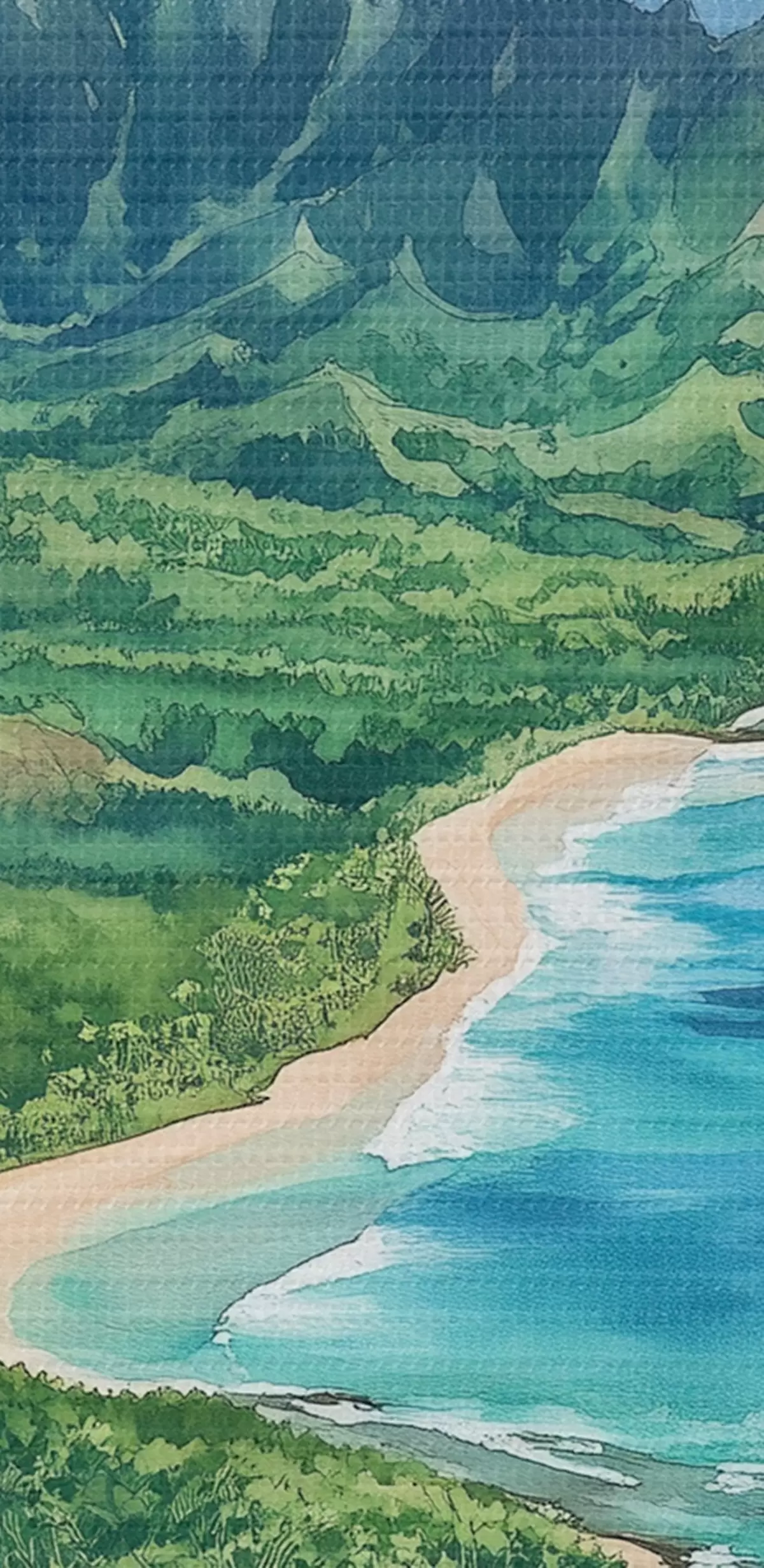 Кругла картина Зелені гори, Гаваї, океан, тропіки, акварель Nr r44143