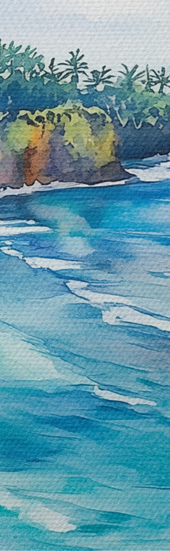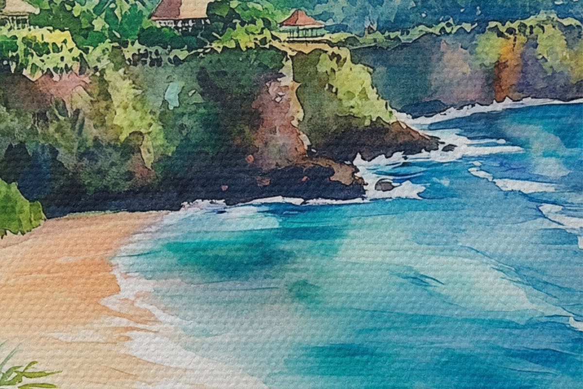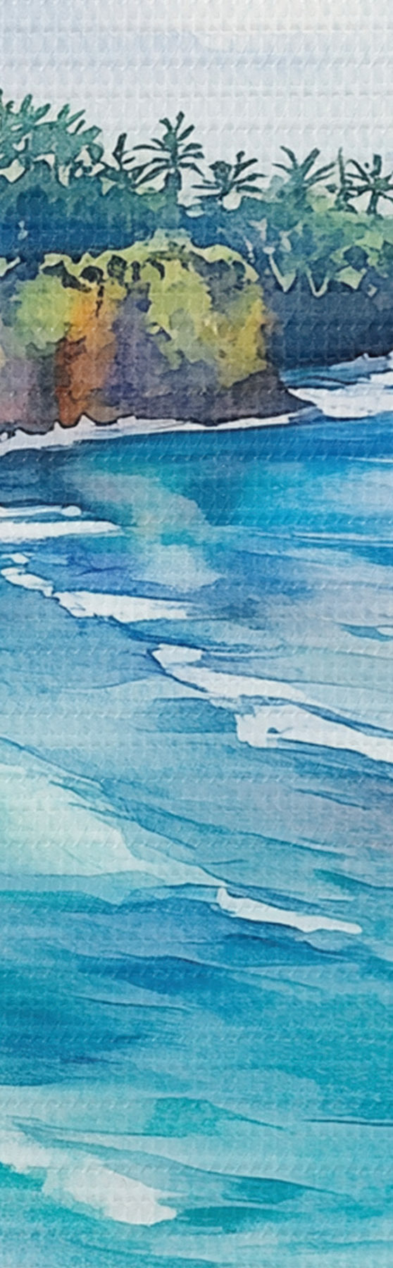 Кругла картина Тропічний океанський пляж, пальми, квіти, акварельний стиль Nr r44145