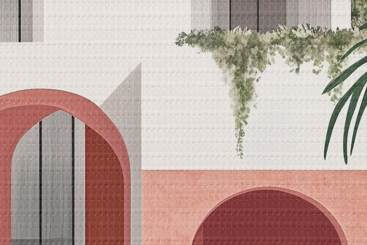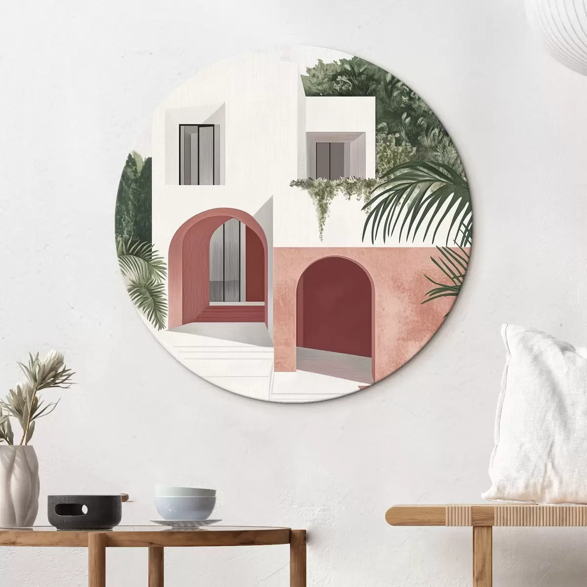 Кругла картина Вілла з тропічним садом, середземноморський, акриловий стиль r44151