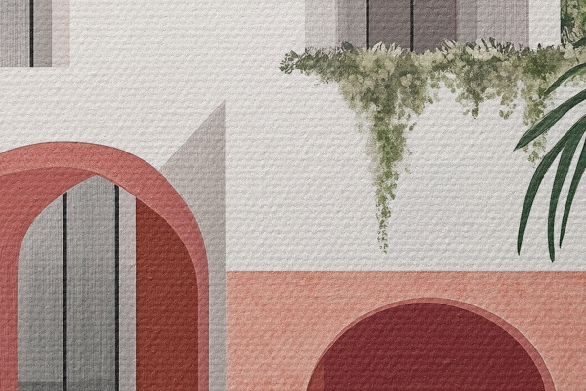 Кругла картина Вілла з тропічним садом, середземноморський, акриловий стиль Nr r44151