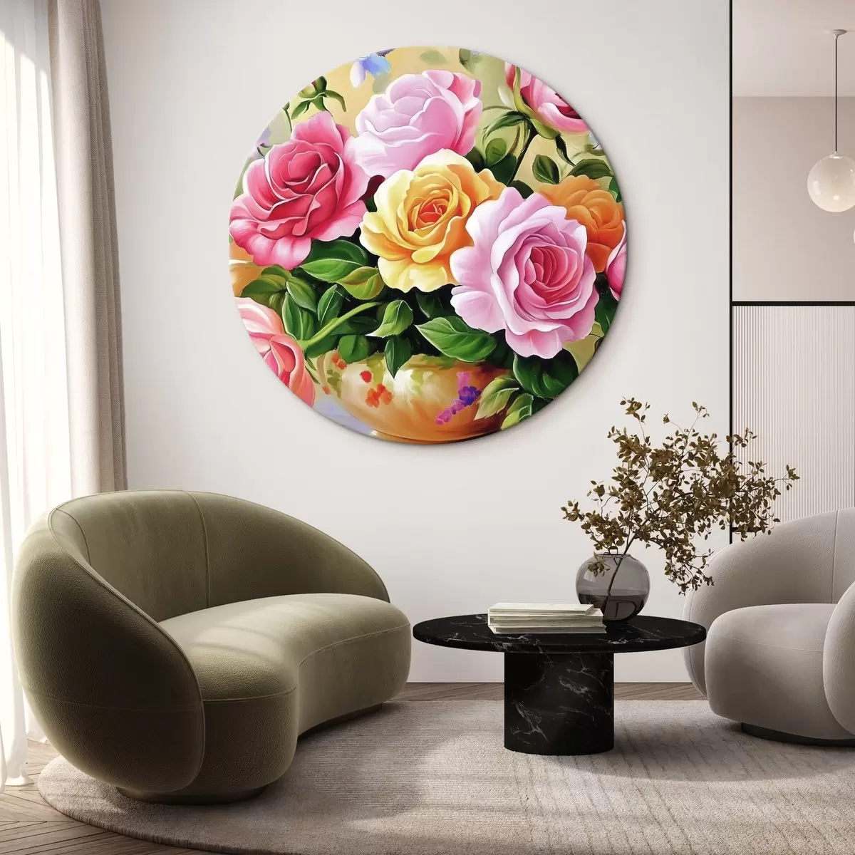 Кругла картина Пишний букет яскравих квітів Nr r44217