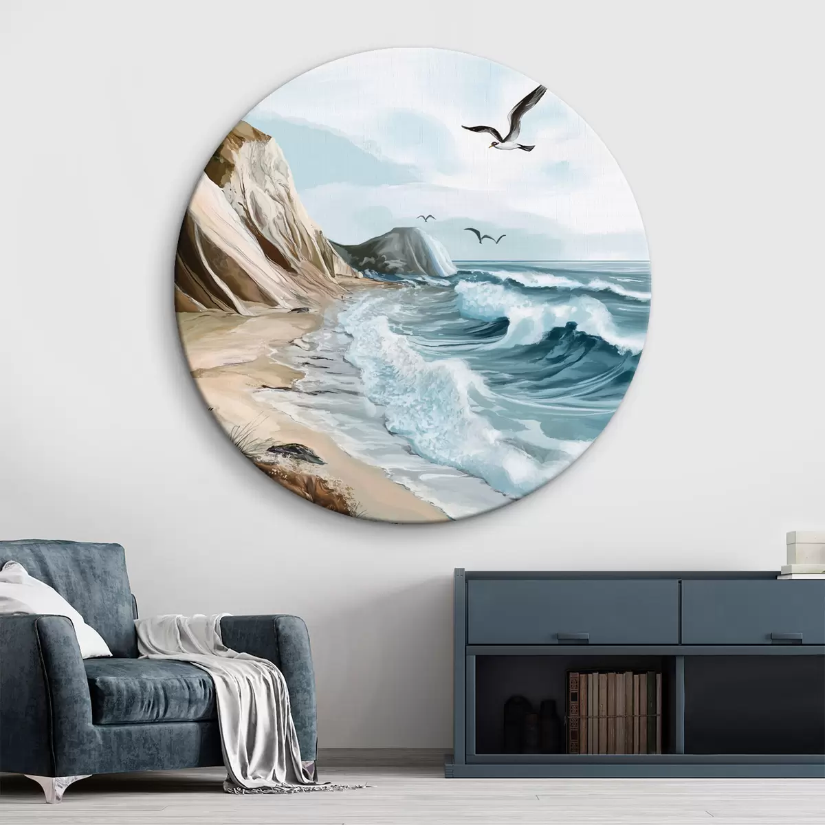 Кругла картина Піщаний пляж і птахи Nr r44222