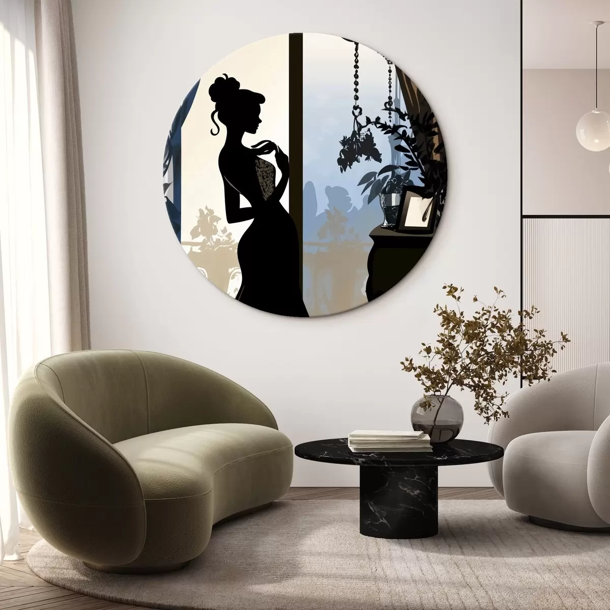 Кругла картина Силует дівчини в сукні r44227