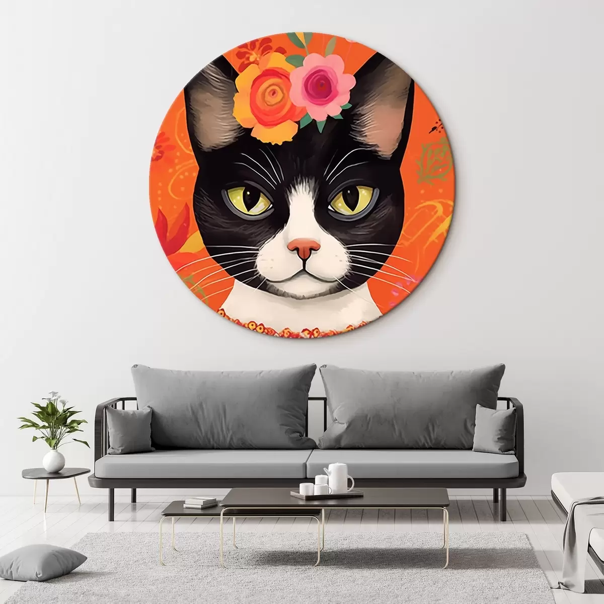 Кругла картина Кіт у квітковому мотиві Nr r44262