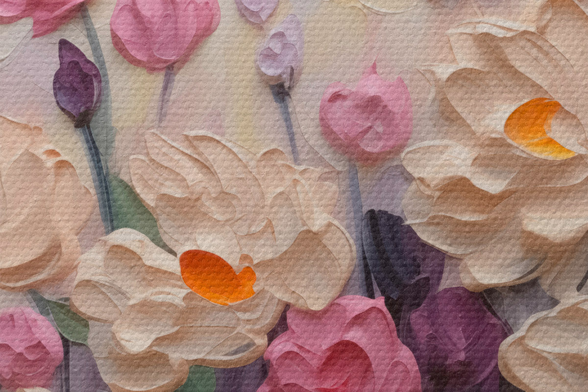 Для замовлення доступні три типи матеріалу: Економ Полотно - щільний і міцний матеріал для цифрового друку, ідентичний художньому полотну, водонепроникна поверхня, реалістичне відтворення деталей, матеріал середньої зернистості. Преміум полотно - фактура нагадує полотно художника (переплетені дрібні нитки). М'яке, деталізоване відтворення зображення на матовій поверхні. Еко-Преміум - високоякісне 100% бавовняне полотно. Завдяки натуральним бавовняним волокнам матеріал міцний і зносостійкий. Відмінна передача кольору та деталізація.