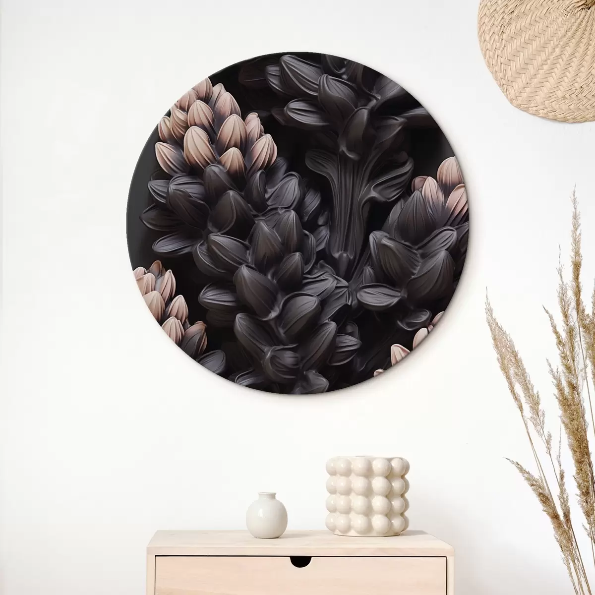 Кругла картина Темні квіти r44296