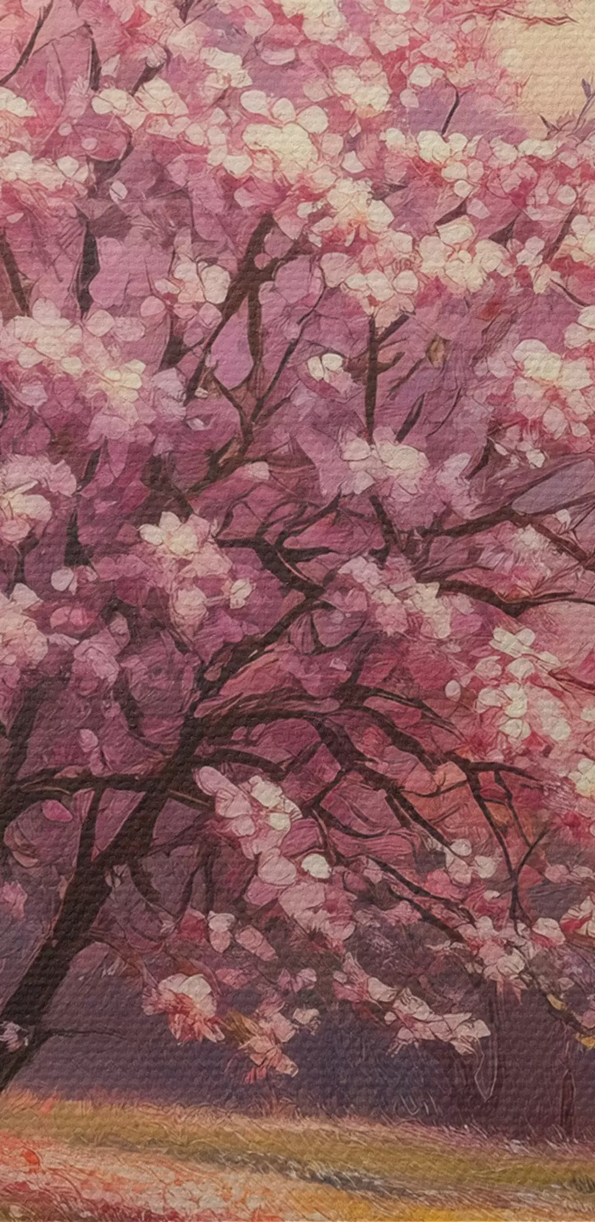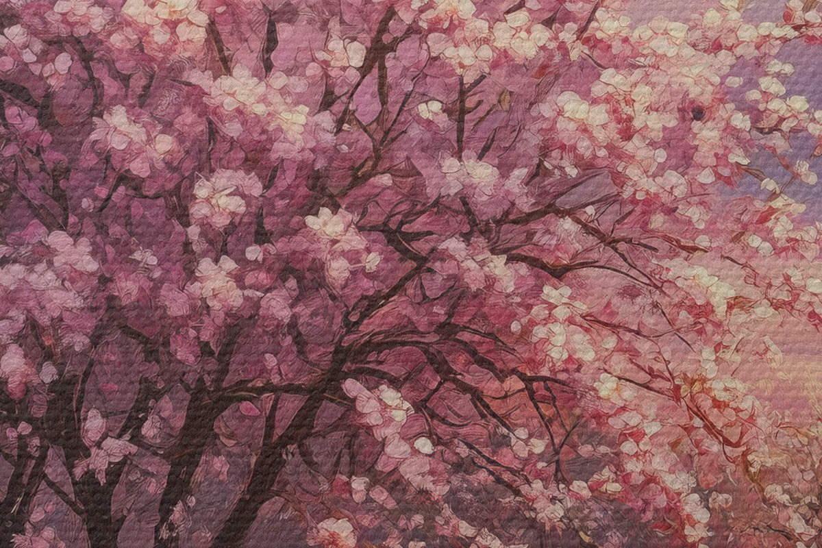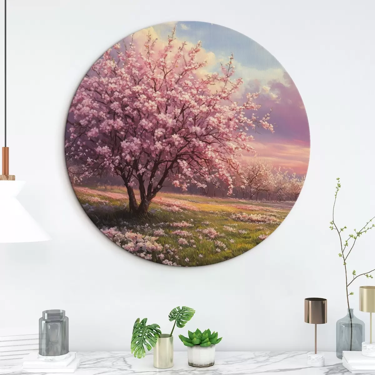 Кругла картина Квітучі рожеві дерева Nr r44324