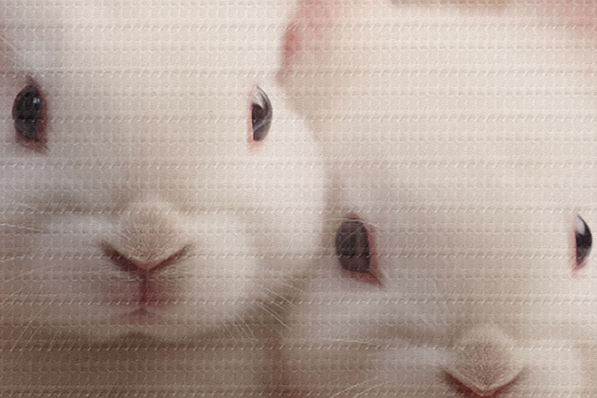 Кругла картина Два білих кролика в ніжних рожевих квітах r44380