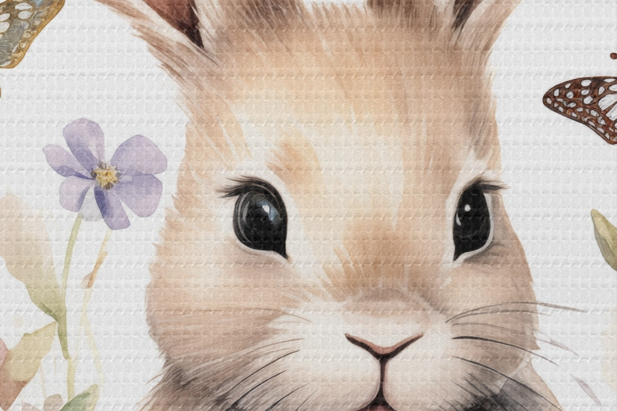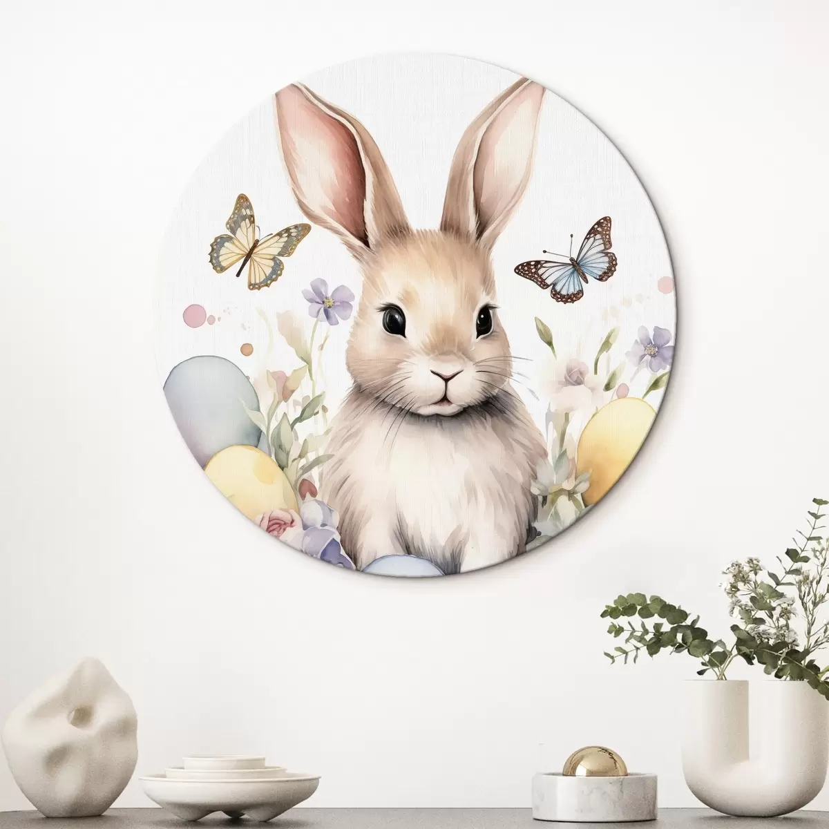 Кругла картина Симпатичний зайчик в акварельному стилі в квітах з метеликами Nr r44388
