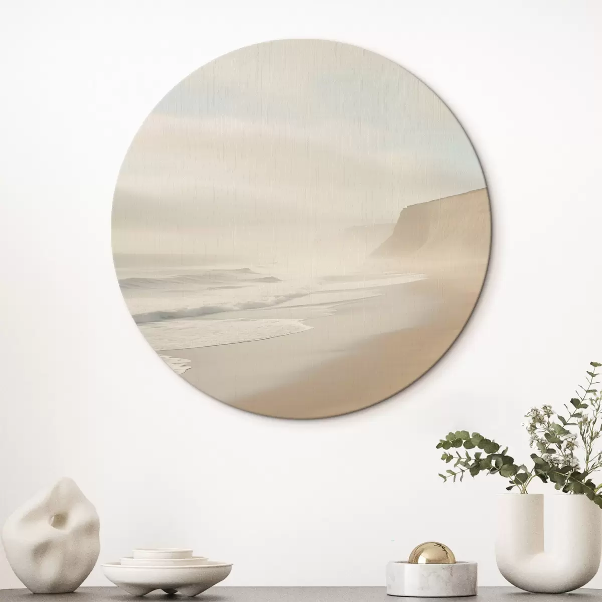 Кругла картина Пейзаж піщаного пляжу зі скелею в ясний сонячний день Nr r44391