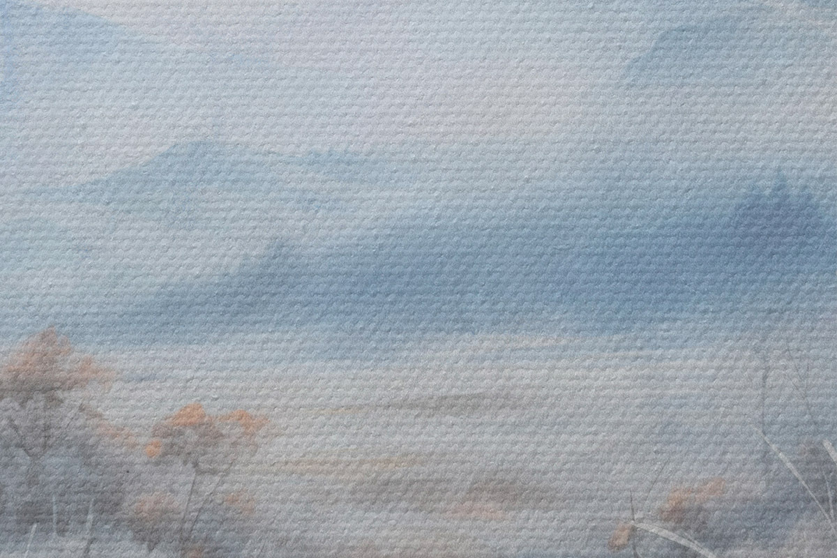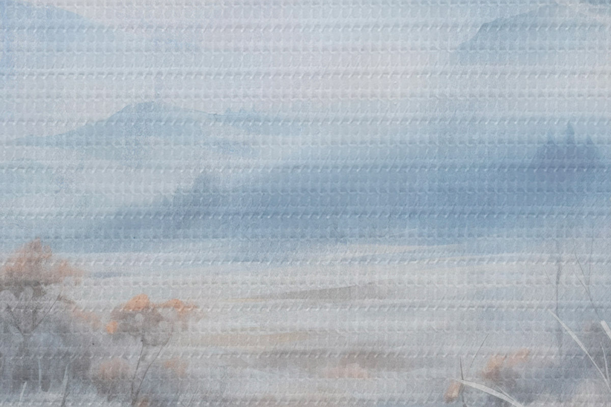 Кругла картина Текстурований пейзаж з горами, сухою травою та лісом, приглушені кольори r44402