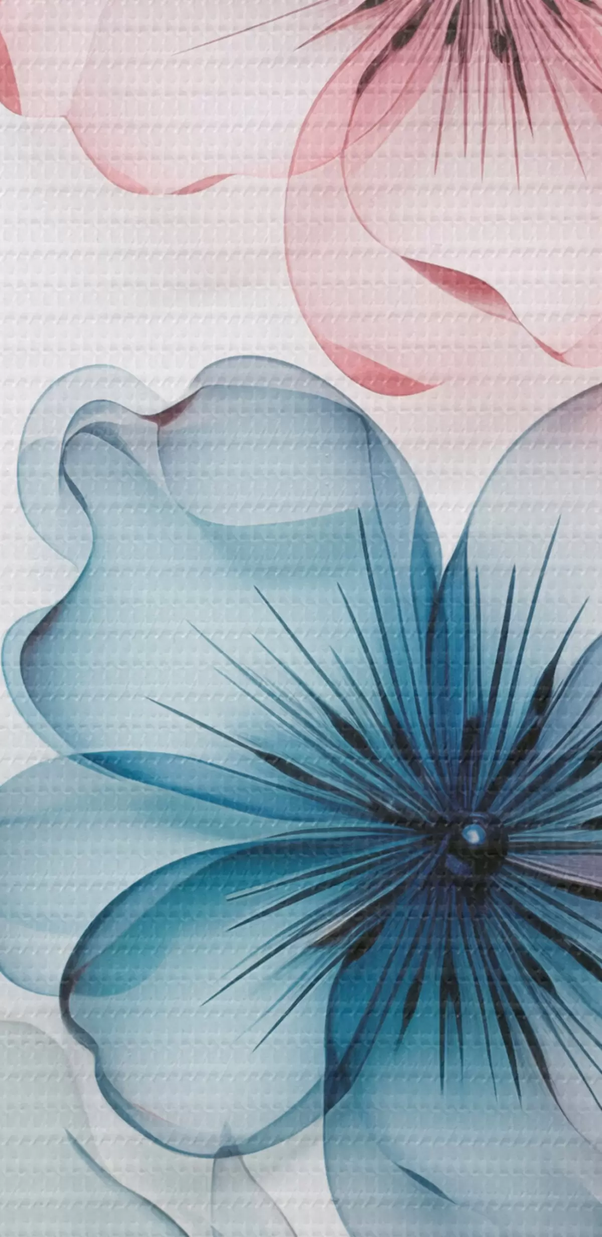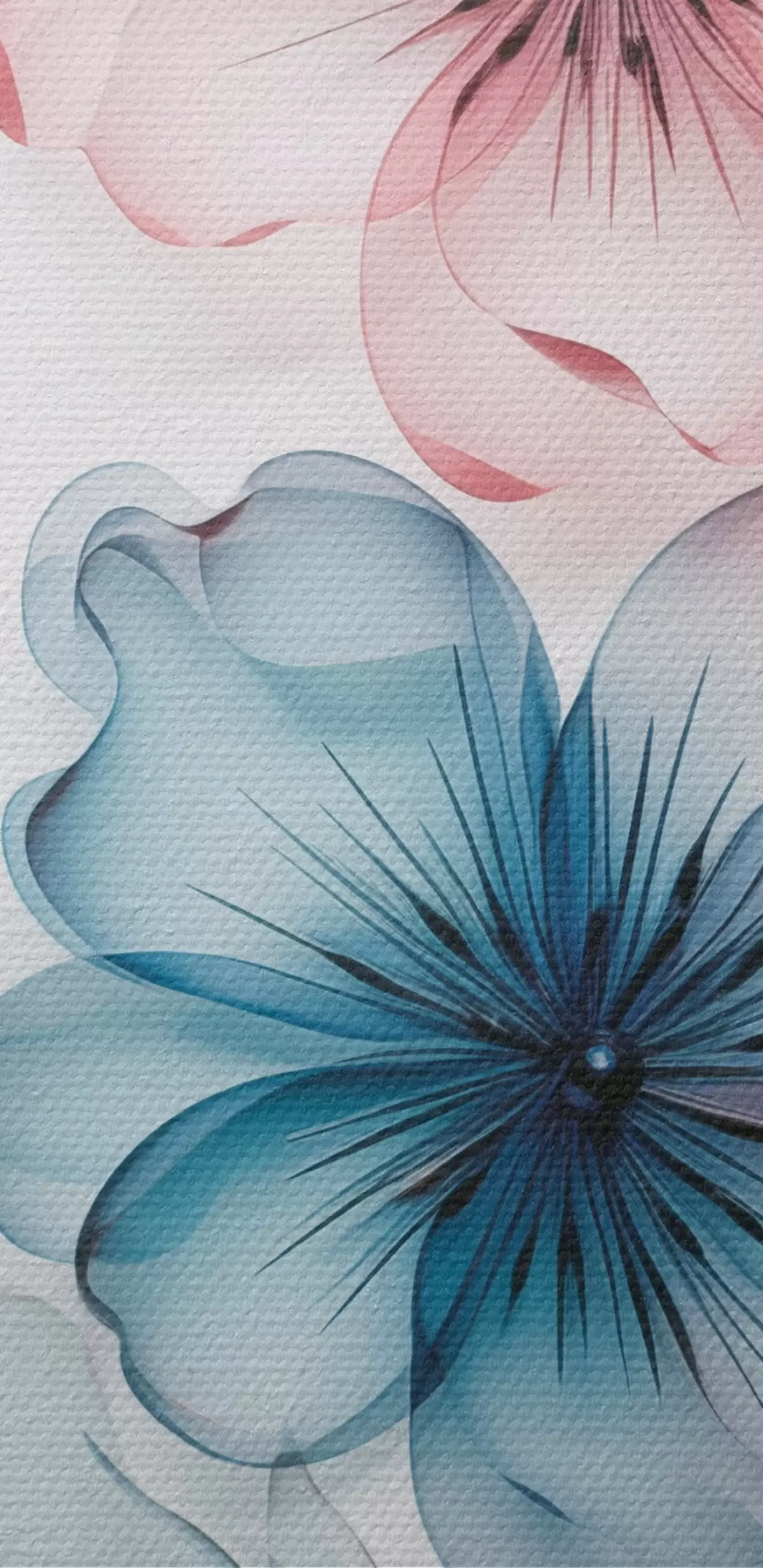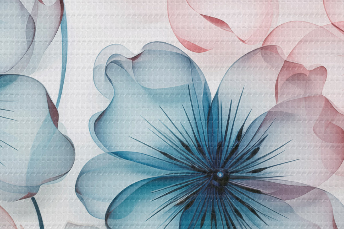 Кругла картина Напівпрозорі приглушені рожеві та блакитні квіти з видимими тичинками та стеблами Nr r44405
