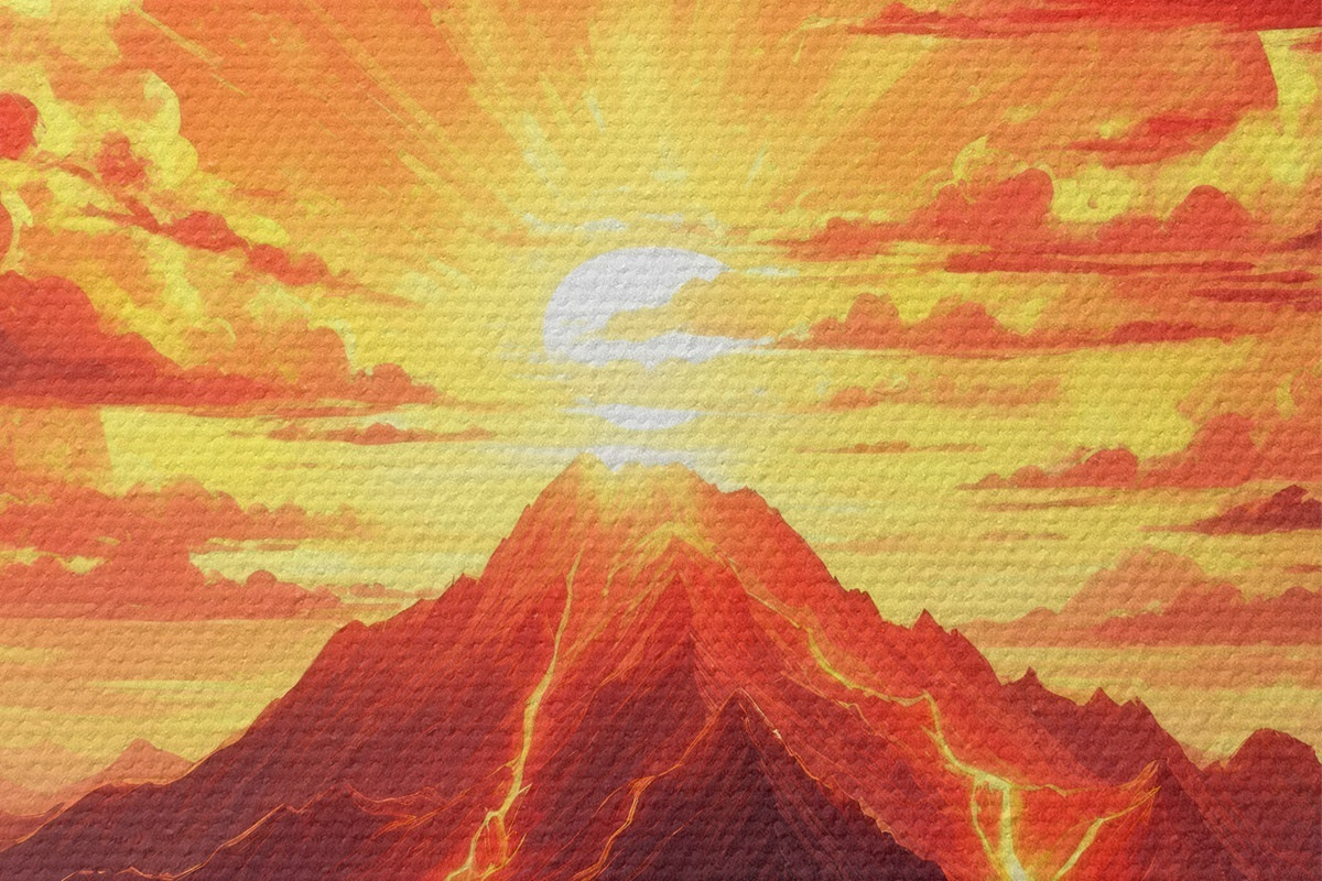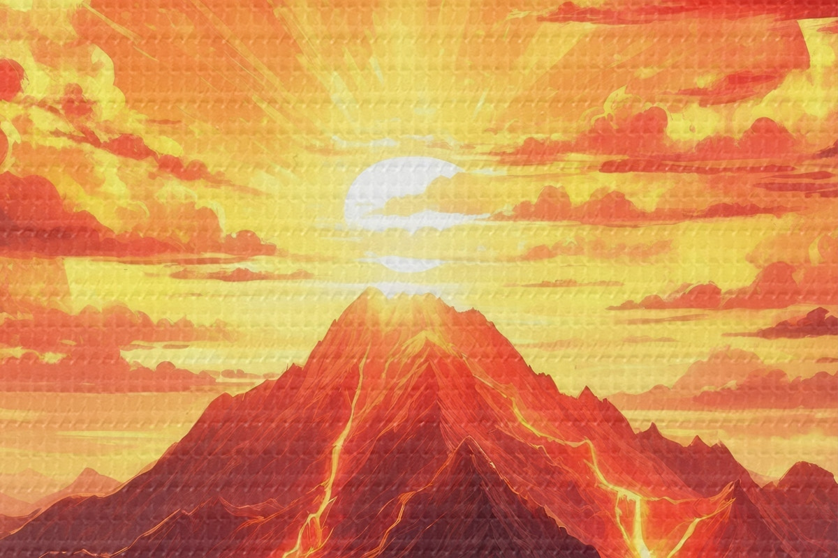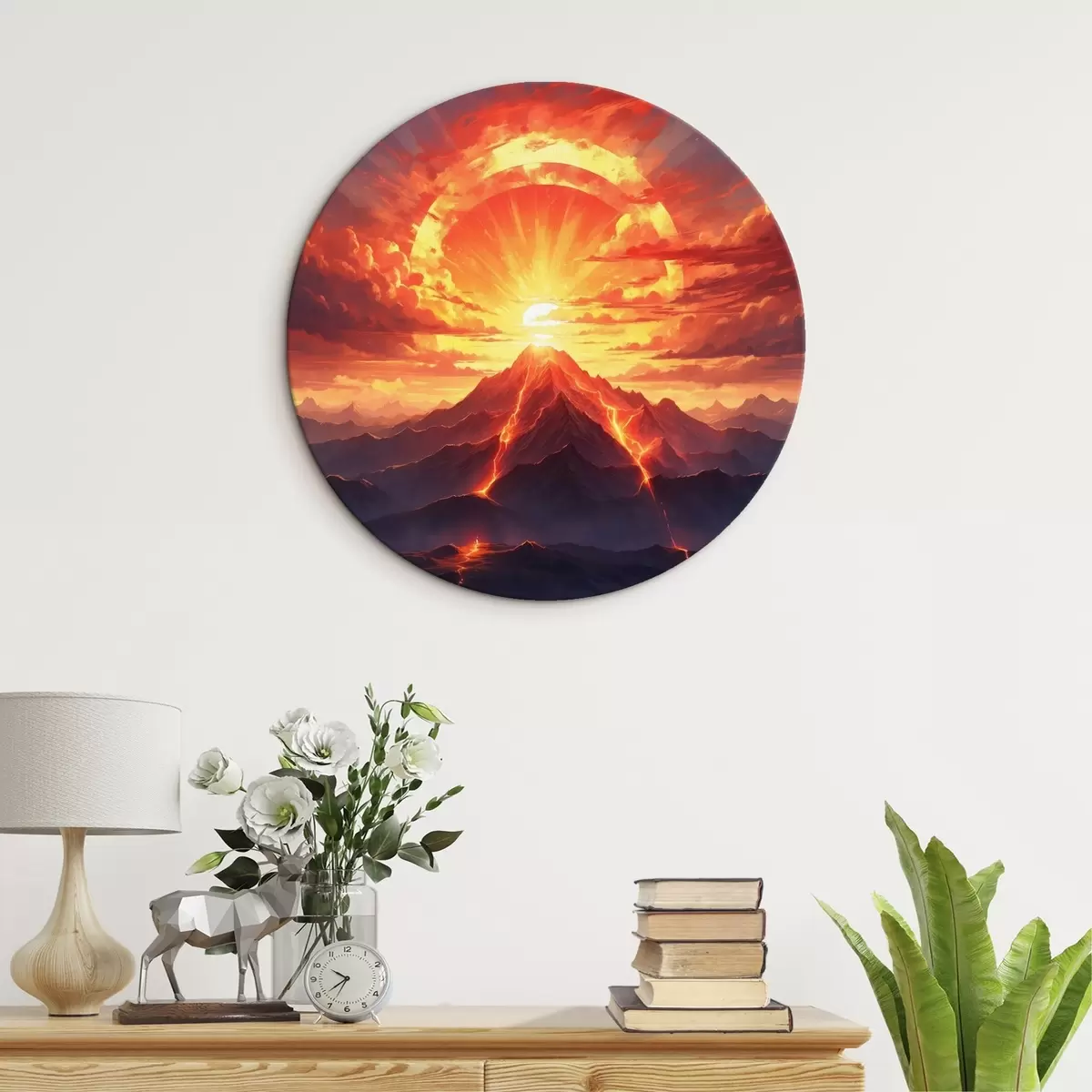 Кругла картина Захід сонця біля вулкану r44432