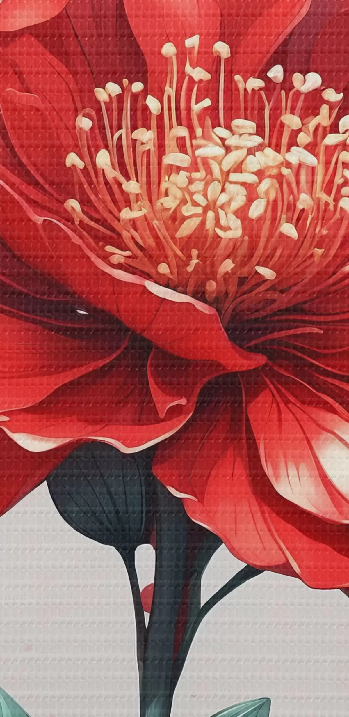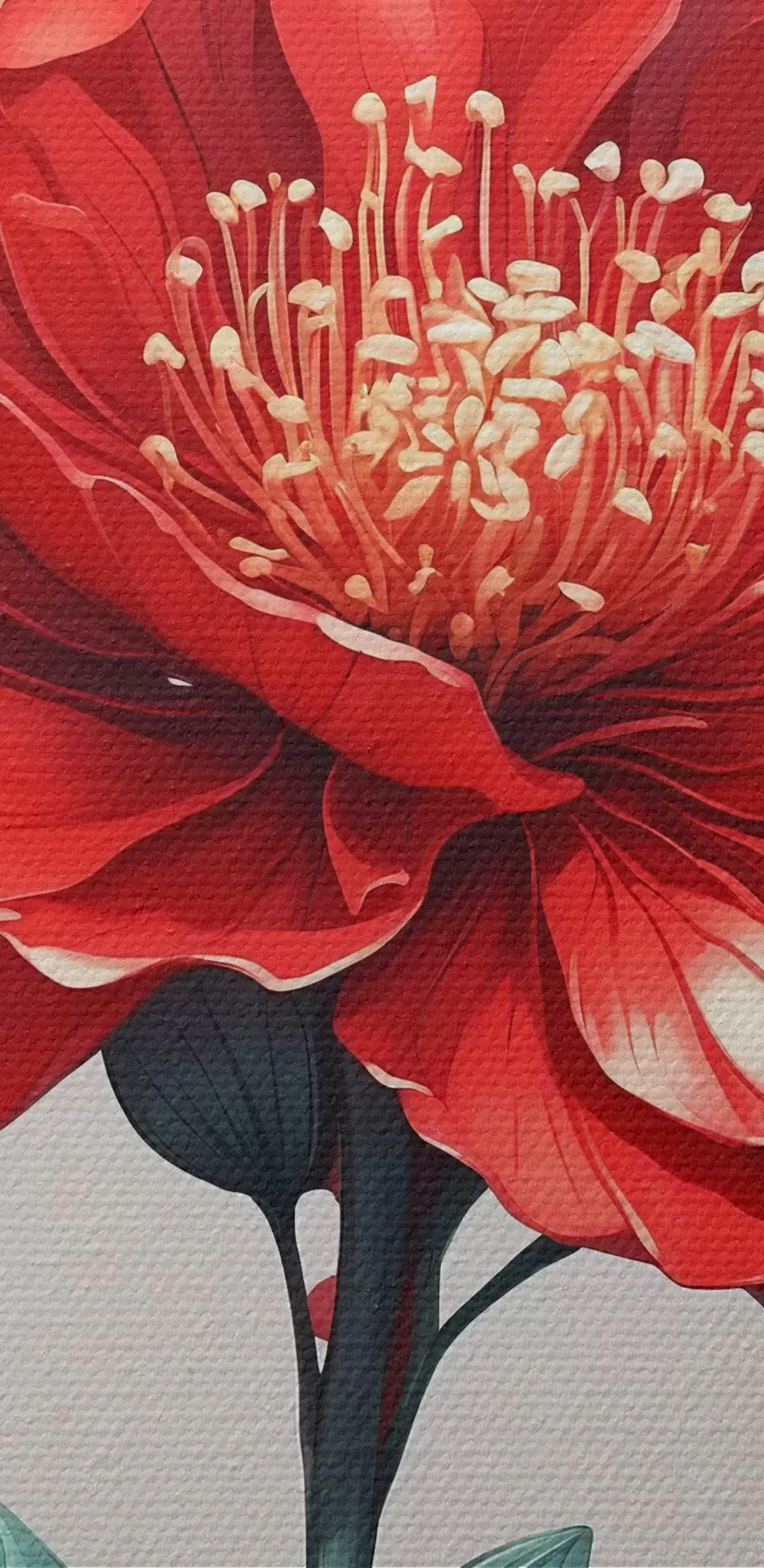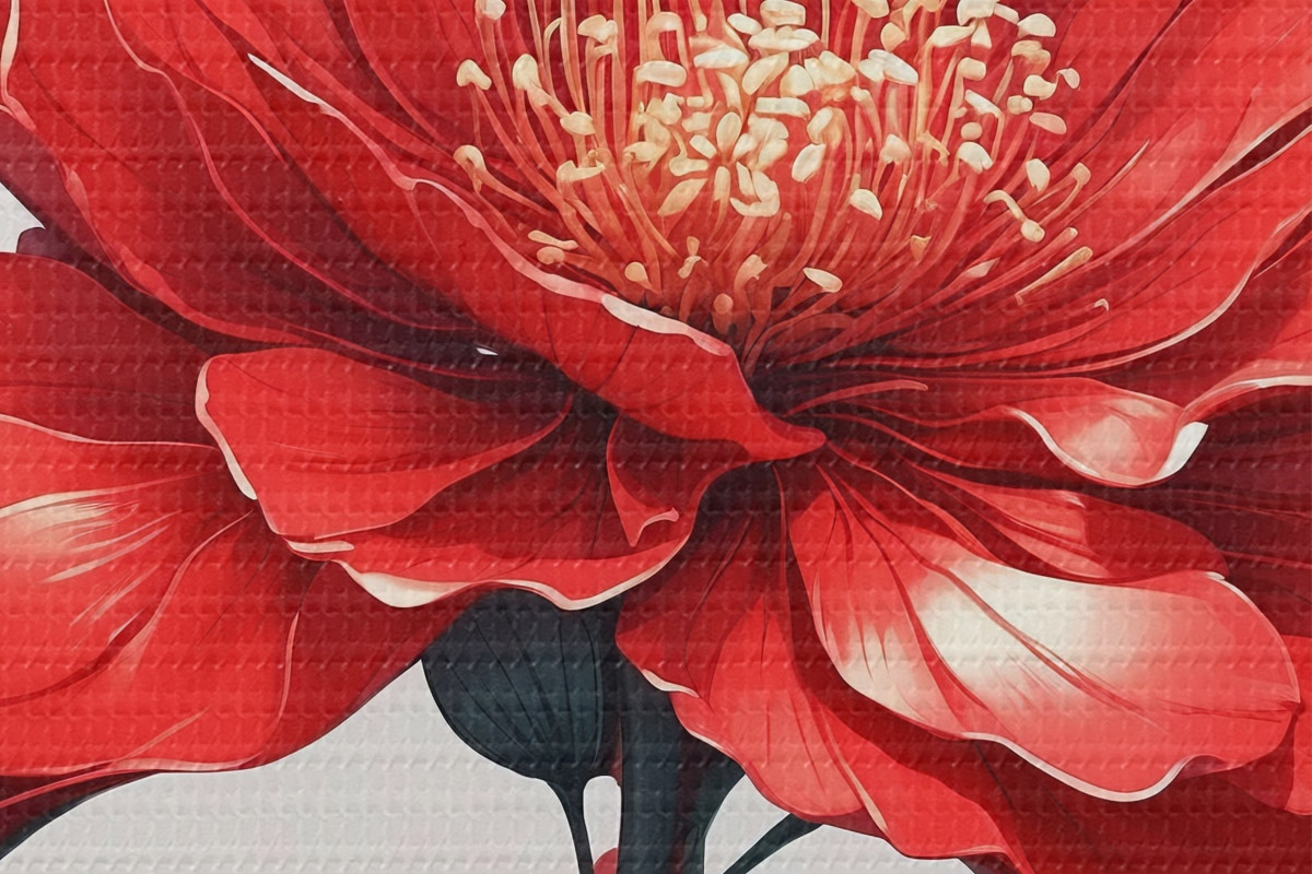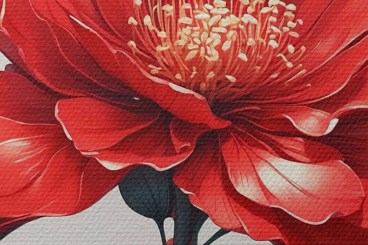 Кругла картина Червона квітка на біло-червоному тлі r44442