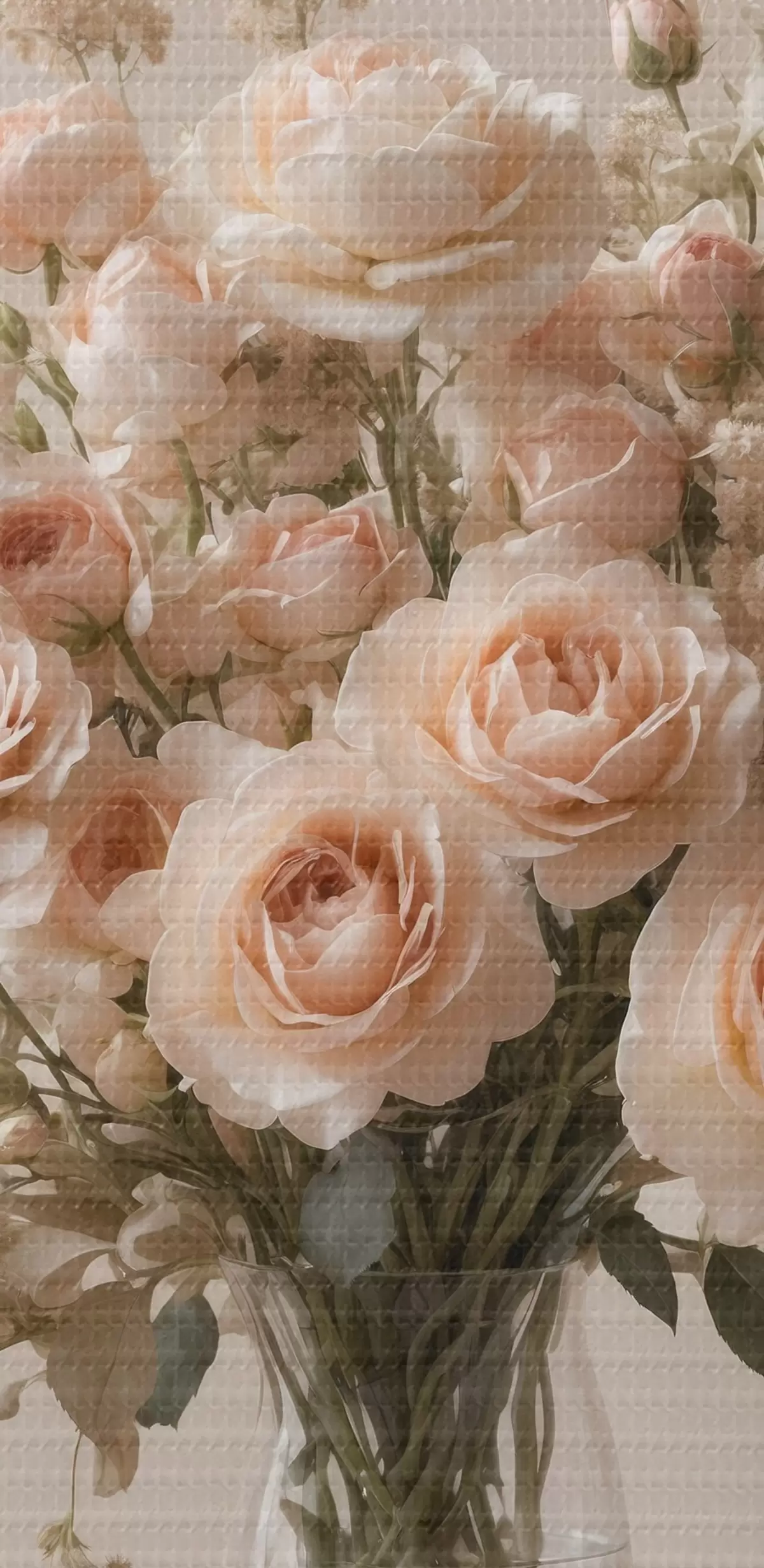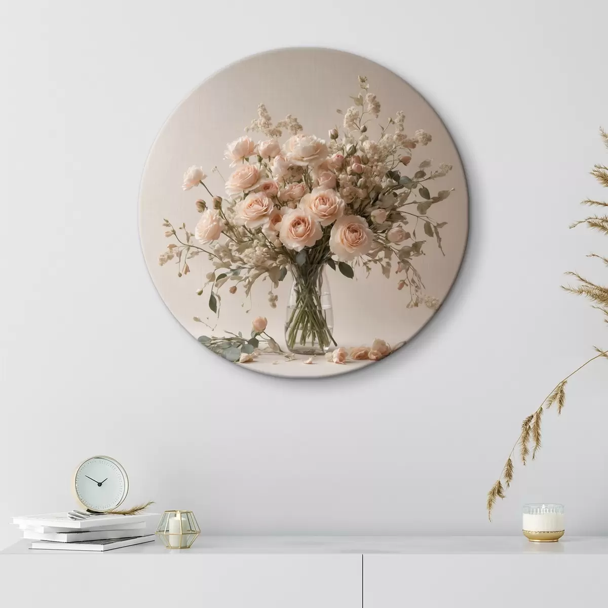 Кругла картина Білі троянди в прозорій вазі r44451