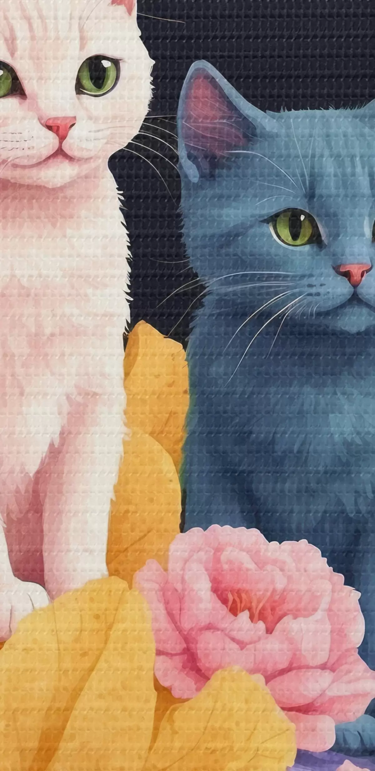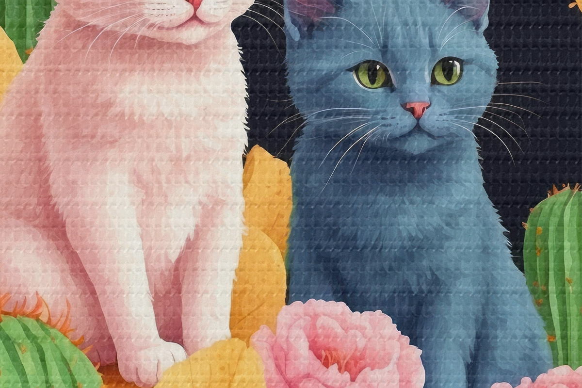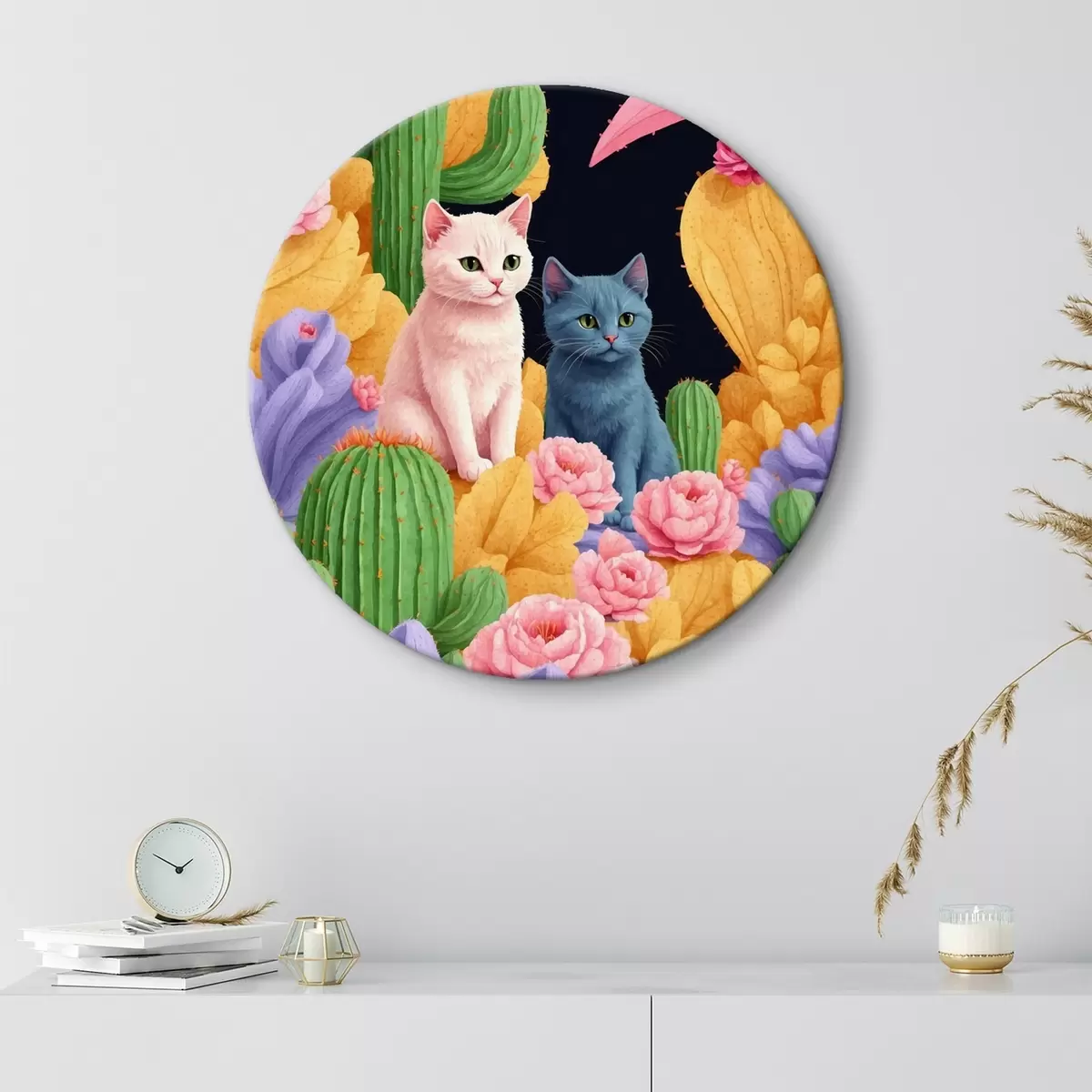 Кругла картина Штучні коти серед квітів та кактусів Nr r44452