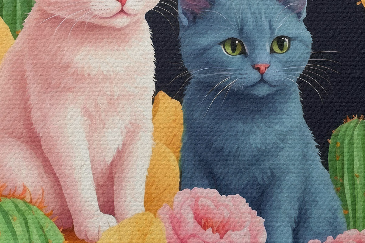 Кругла картина Штучні коти серед квітів та кактусів r44452