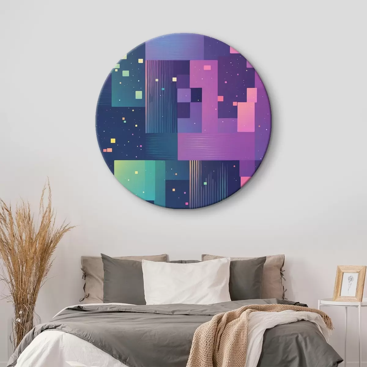 Кругла картина Абстрактний живопис з різнокольоровими прямокутними фігурами Nr r44457