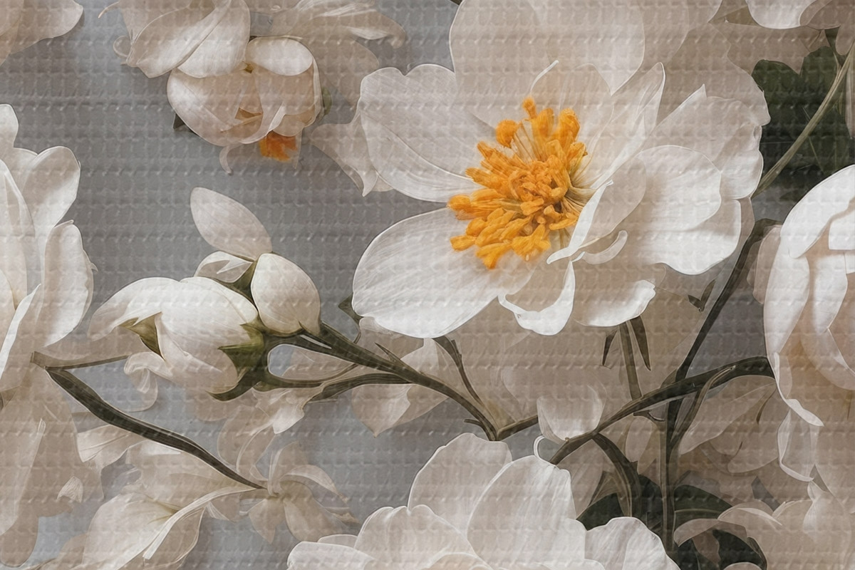Кругла картина Білі квіти та листя на білому тлі Nr r44465