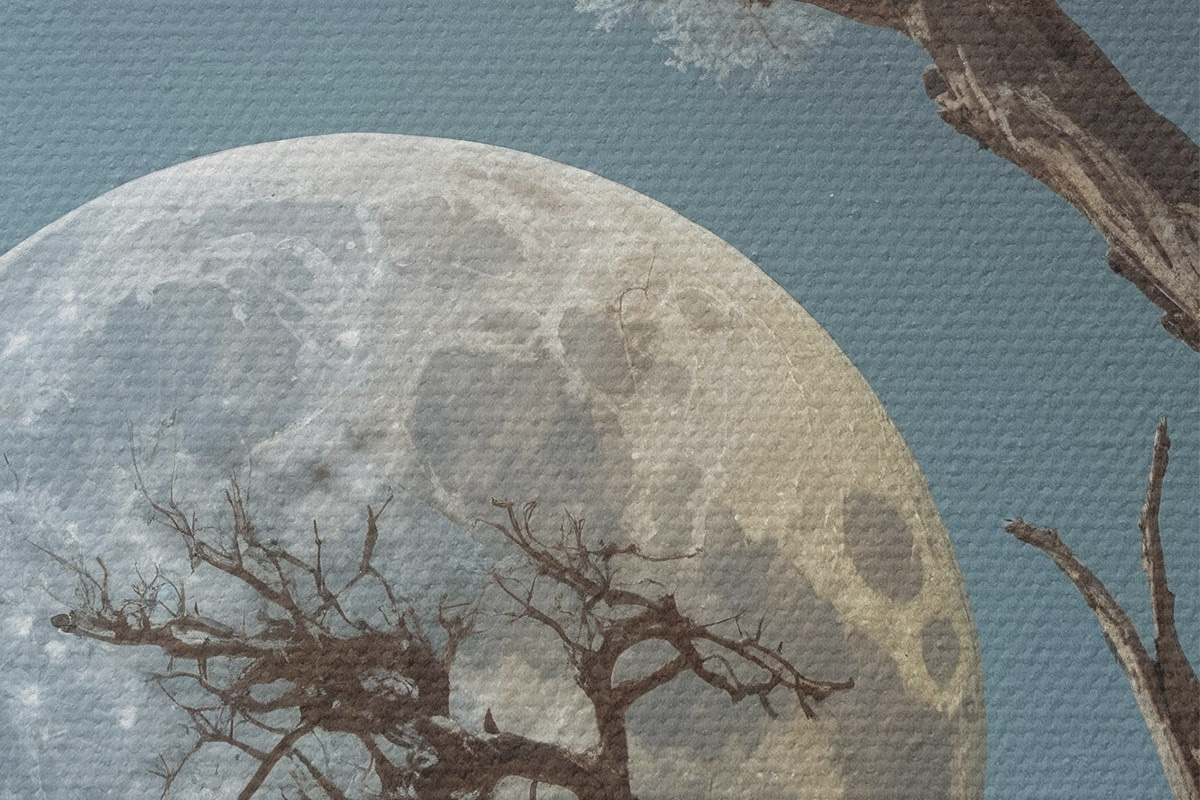 Кругла картина Дерево, що росте посеред озера на тлі місяця Nr r44481