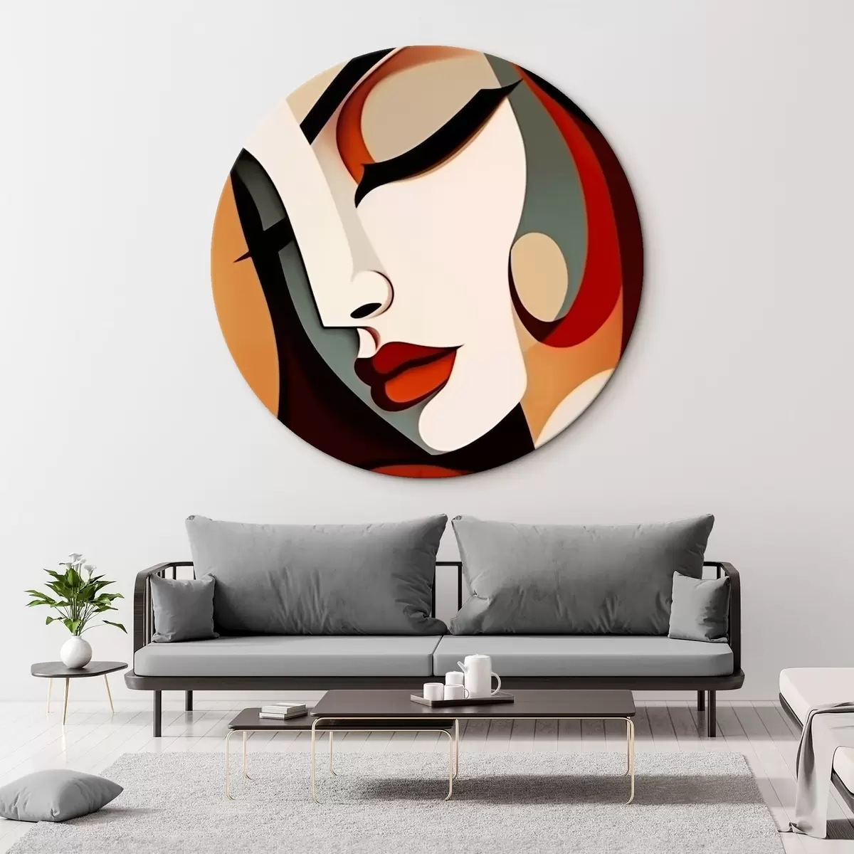 Кругла картина Жіночий профіль у стилі кубізму Nr r44486