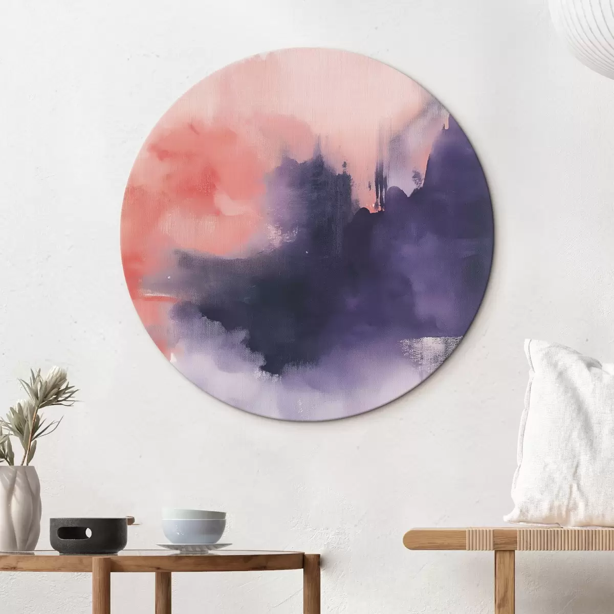 Кругла картина Абстракція в стилі акрилу, мазки пензлем, фіолетовий і рожевий Nr r44507