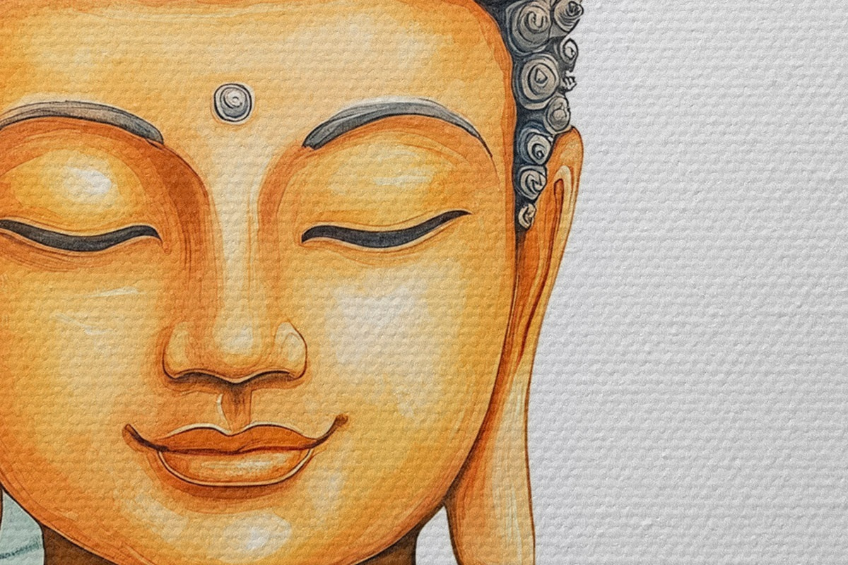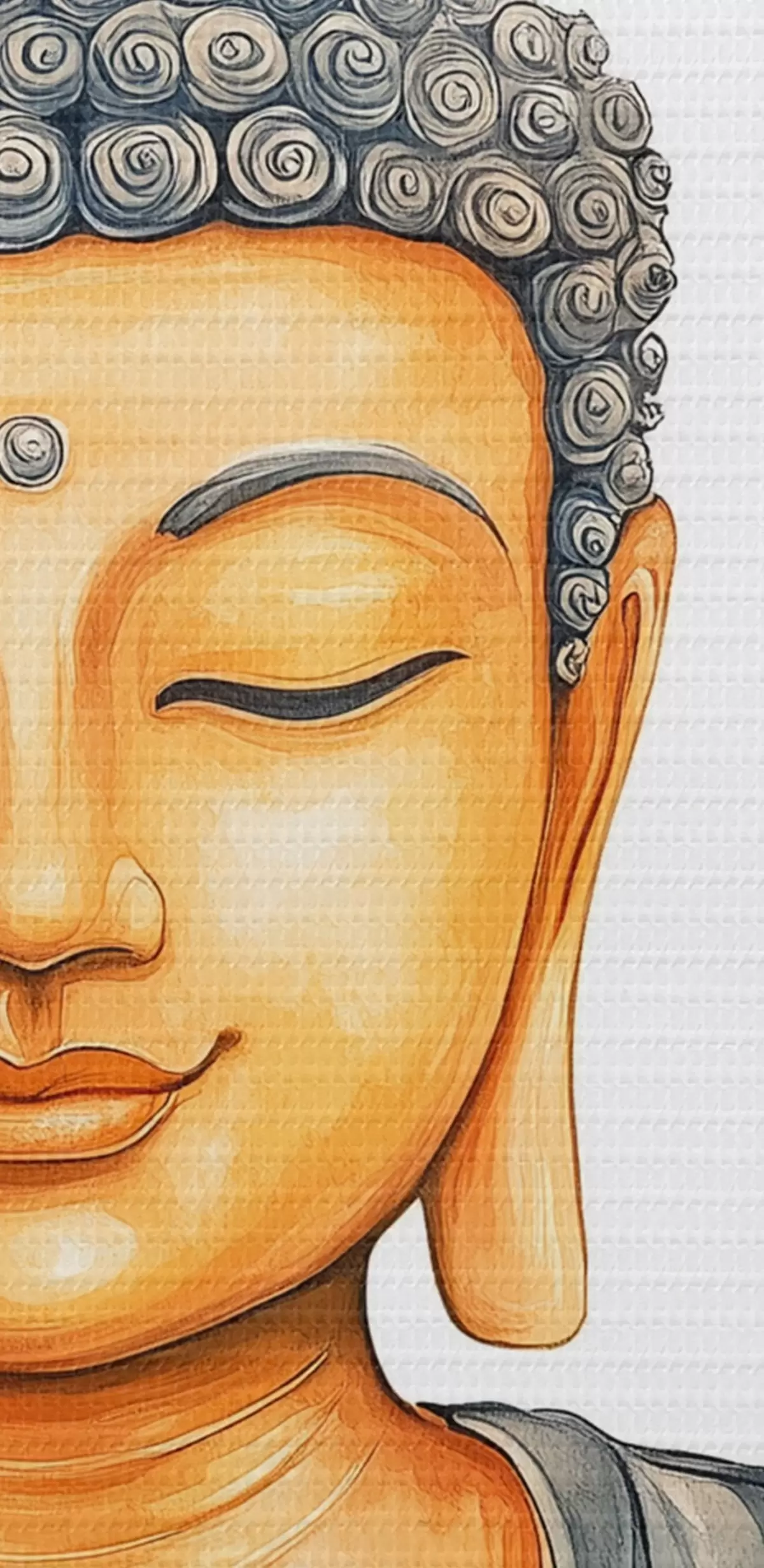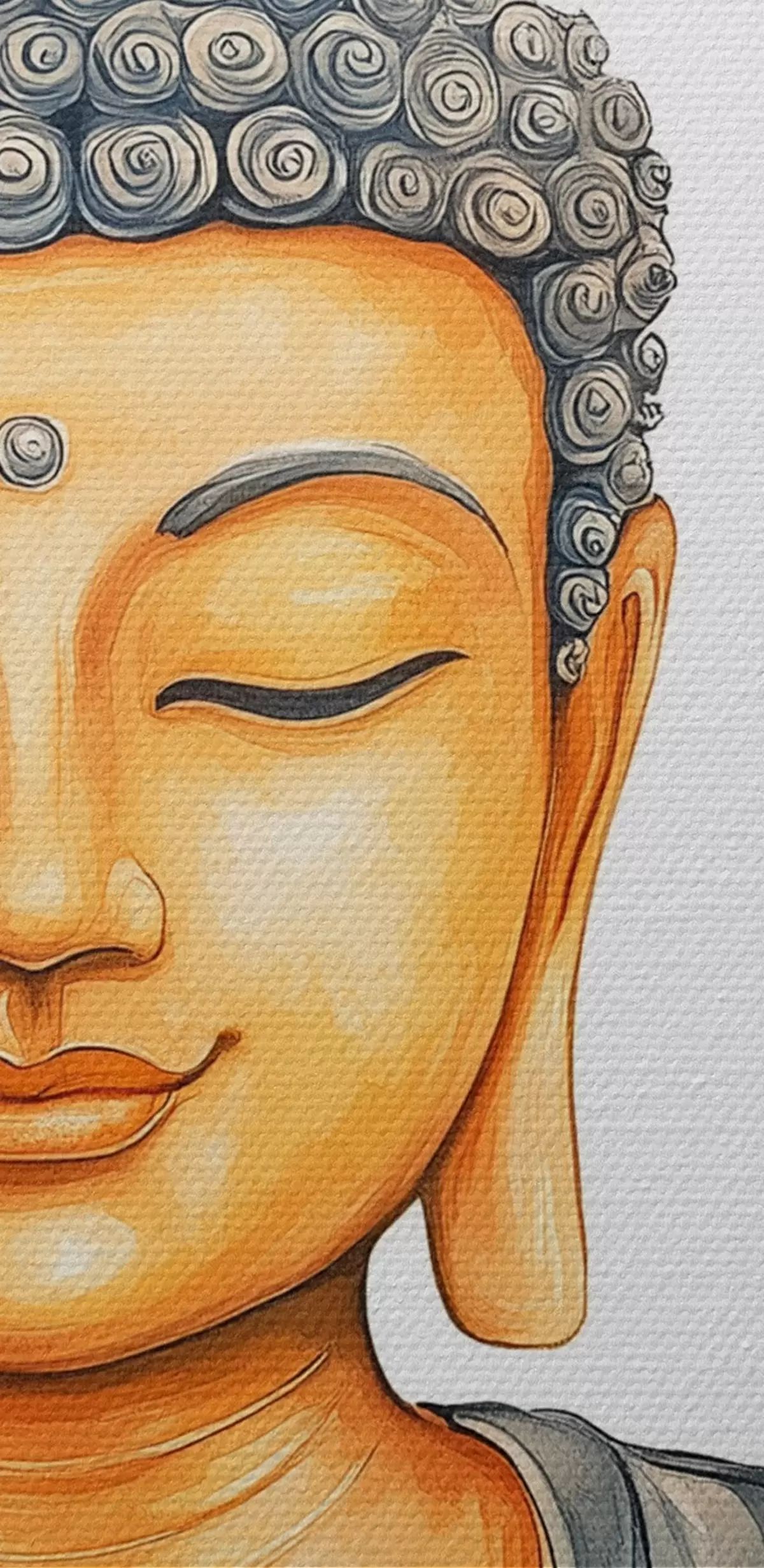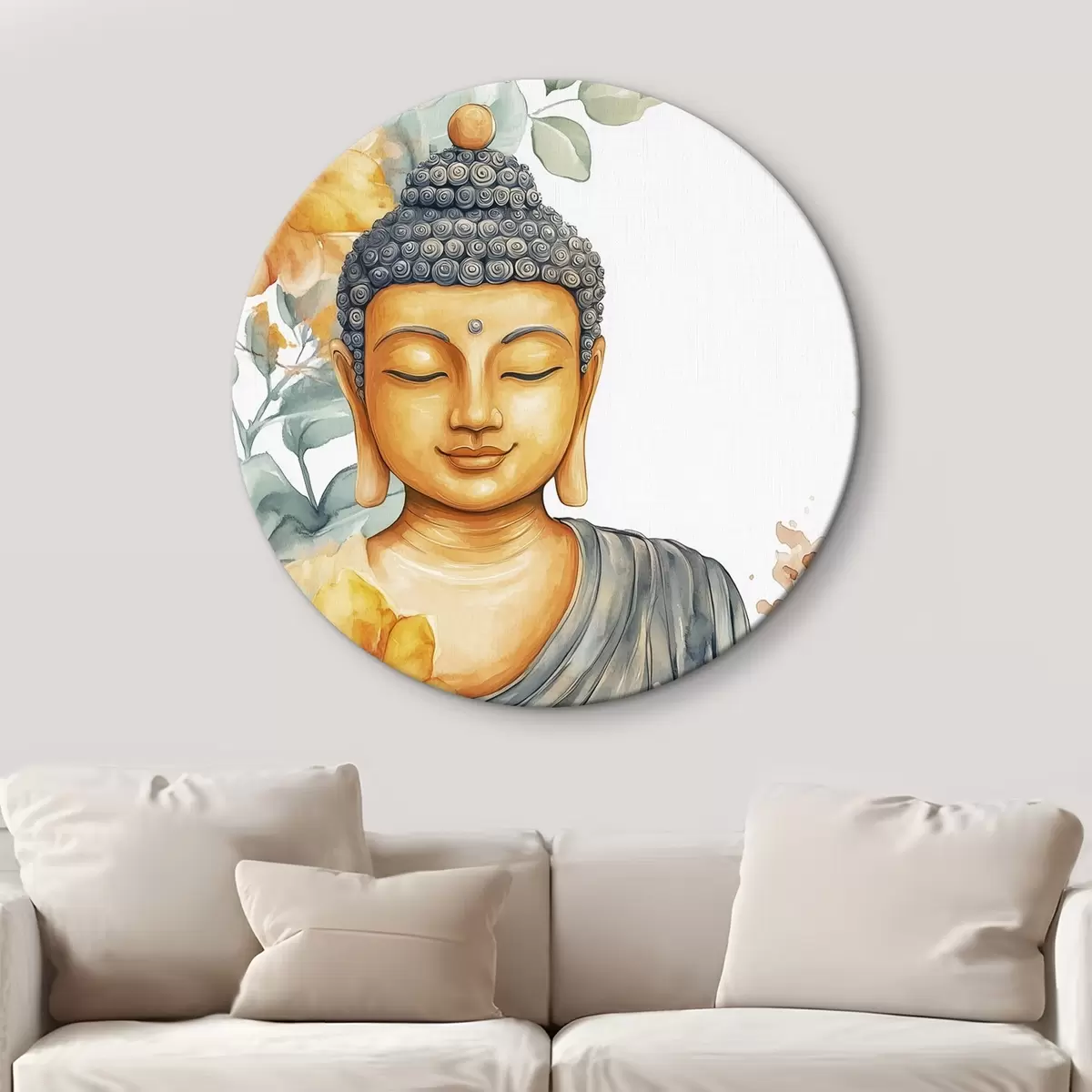 Кругла картина Будда в оточенні помаранчевих квітів, акварельний стиль Nr r44508