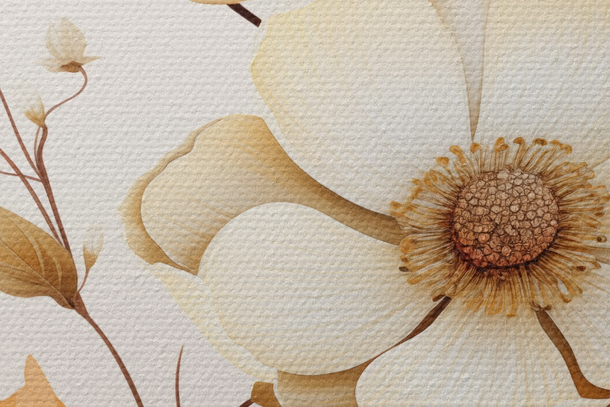 Кругла картина Світлі квіти на бежевому тлі r44549
