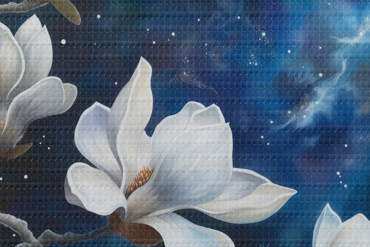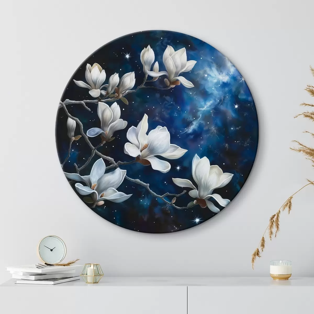 Кругла картина Квіти магнолії на тлі неба Nr r44585