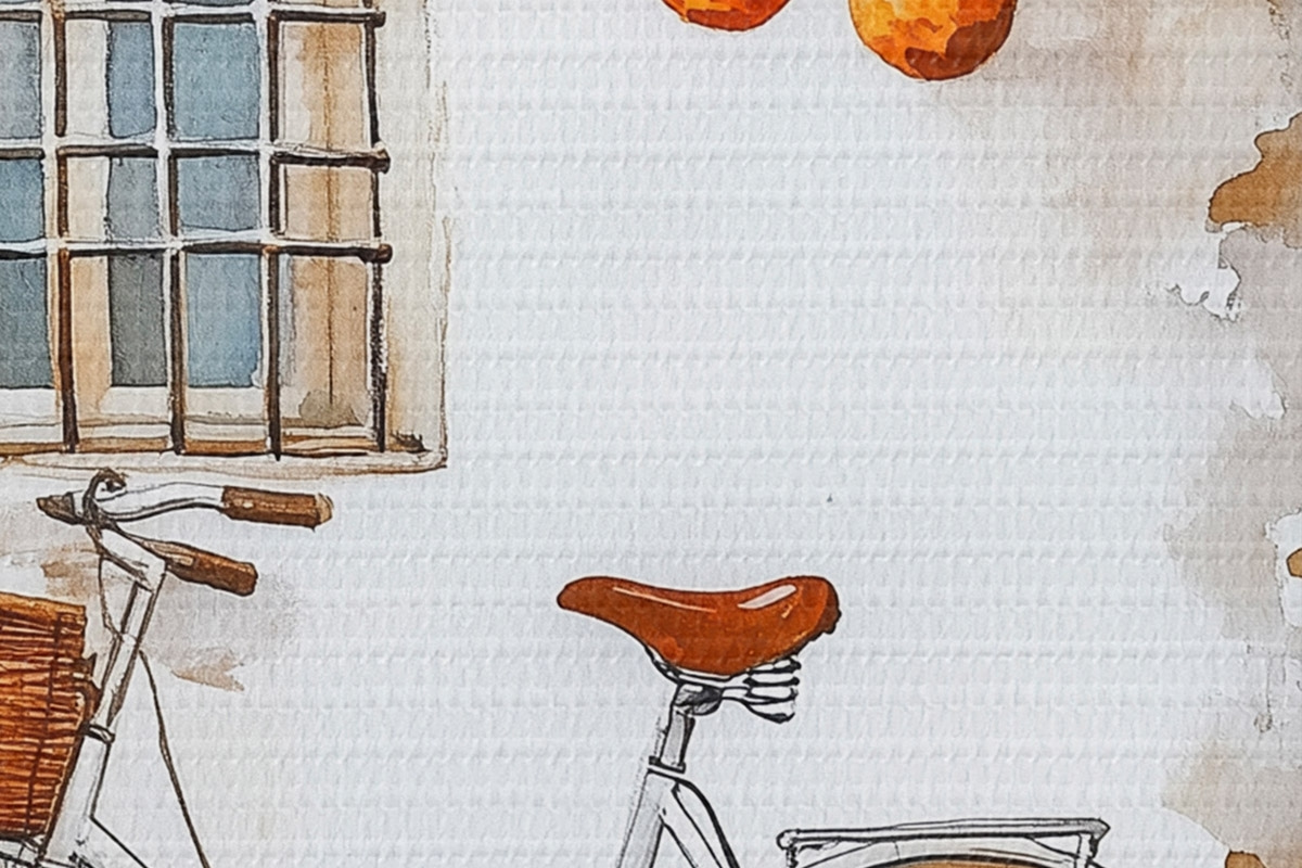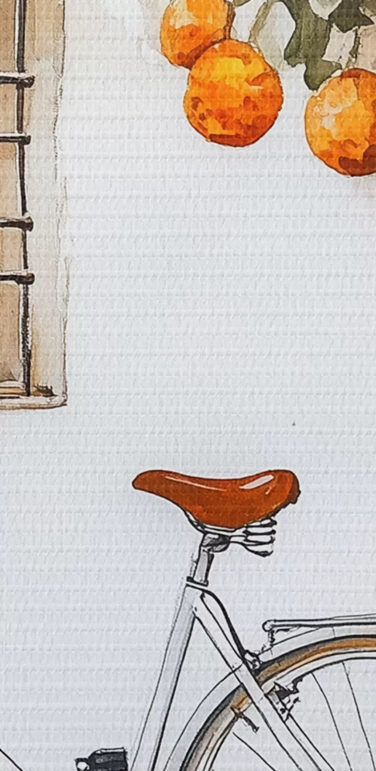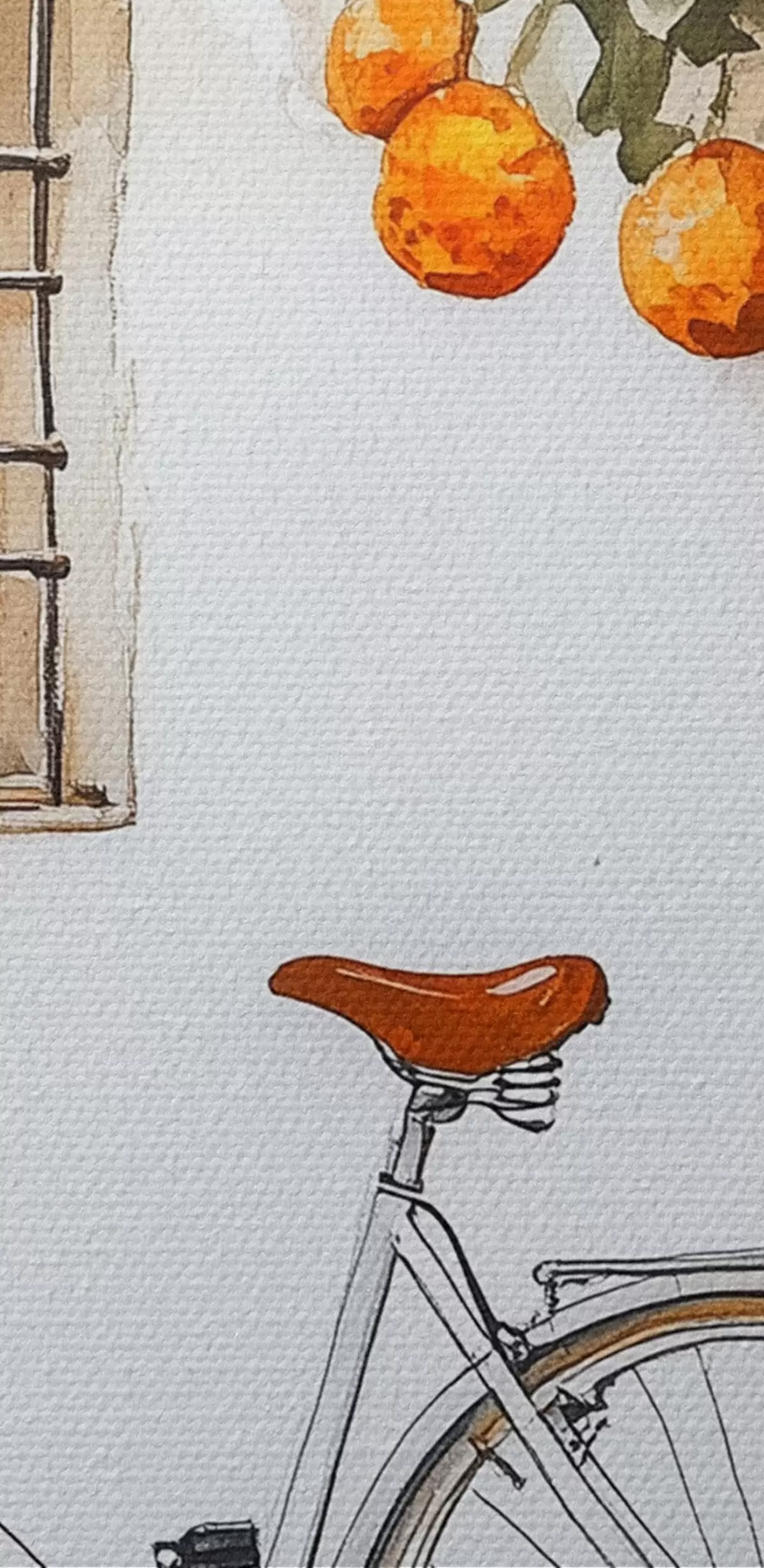 Кругла картина Середземноморський білий будинок з апельсиновим деревом і велосипедом Nr r44610