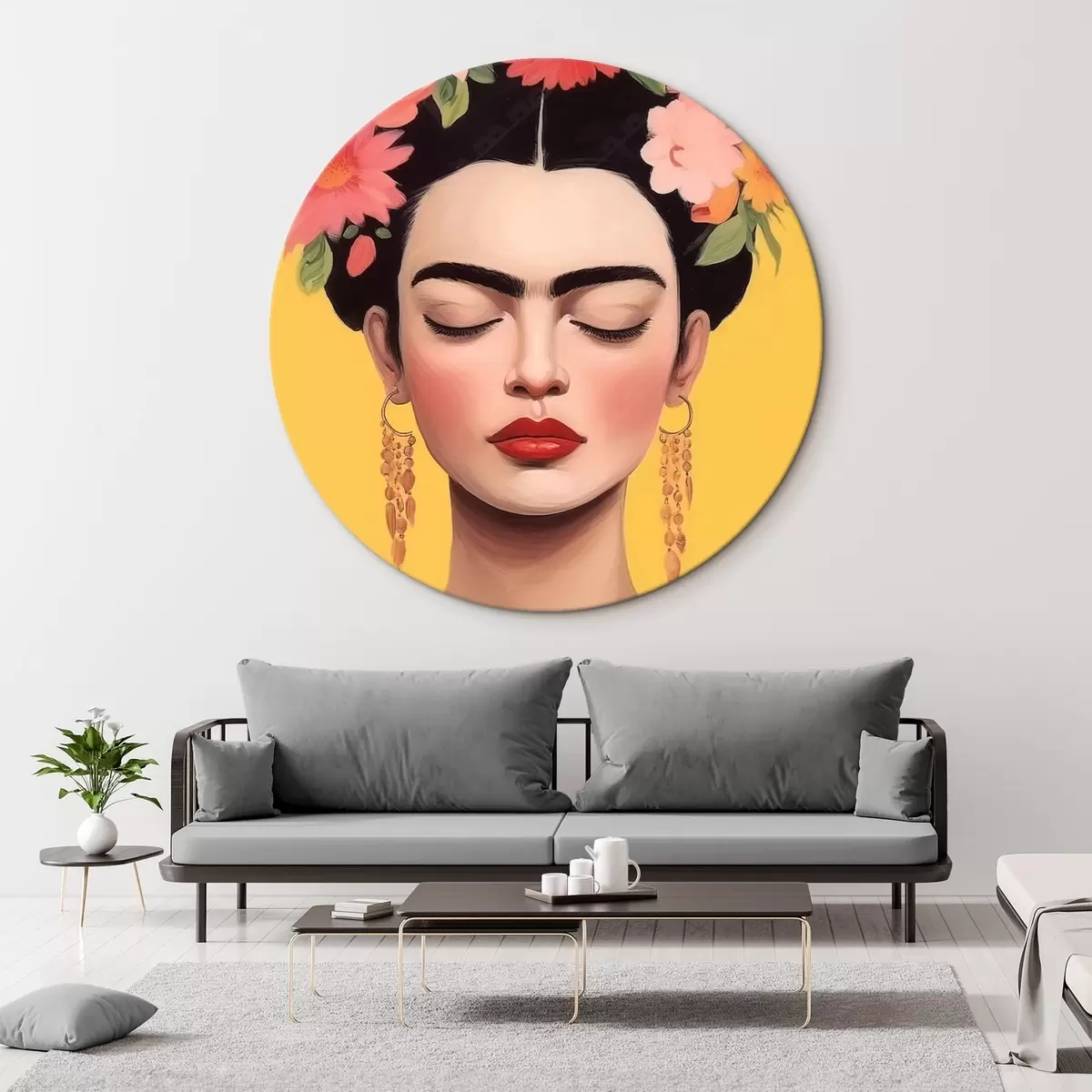 Кругла картина Жіночий портрет з квітами у волоссі Nr r44680