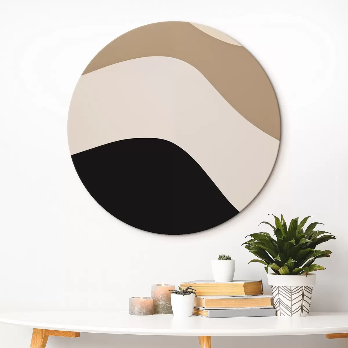 Кругла картина Абстрактні хвилі в бежевому та чорному кольорах Nr r44687