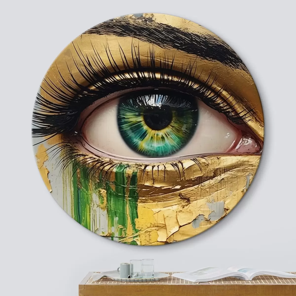 Кругла картина Зелене око на тлі потрісканої фарби Nr r44690