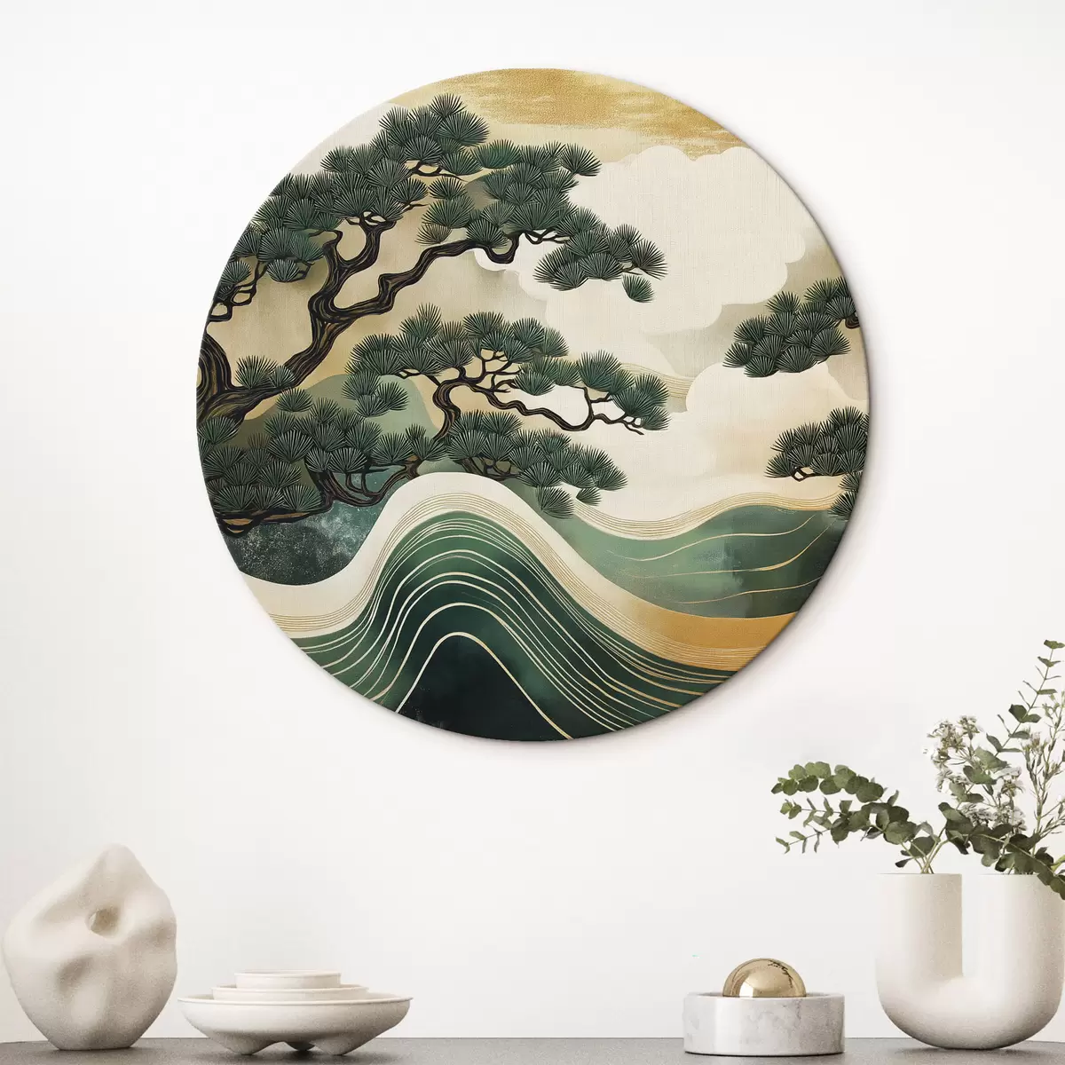 Кругла картина Абстрактні пейзажі з соснами, китайський стиль r44720