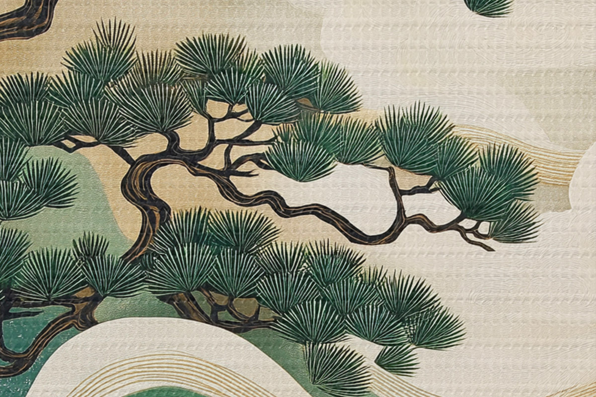 Кругла картина Абстрактні пейзажі з соснами, китайський стиль Nr r44720