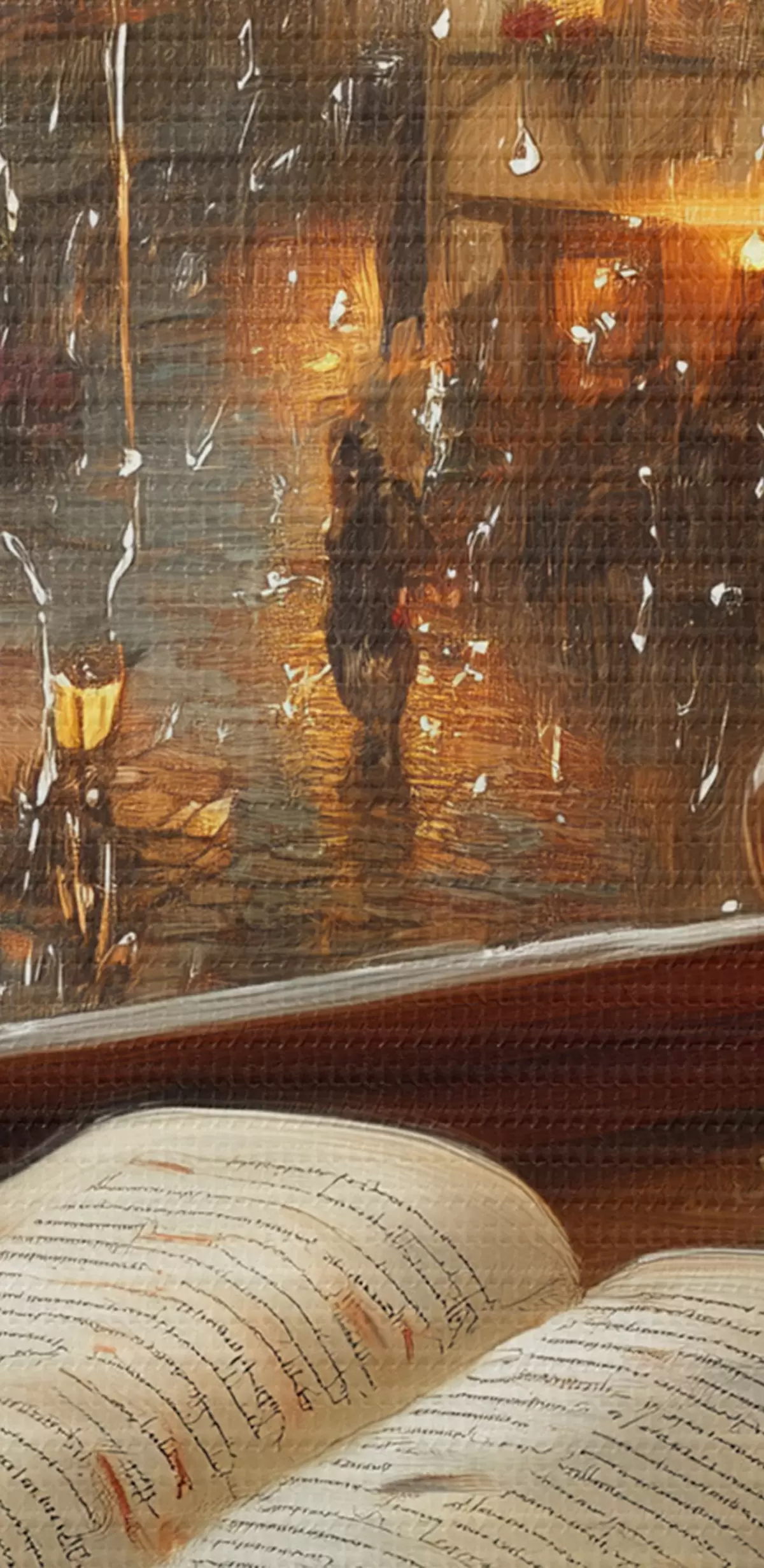 Кругла картина Книга на підвіконні, свічки, дощовий день, затишно Nr r44722