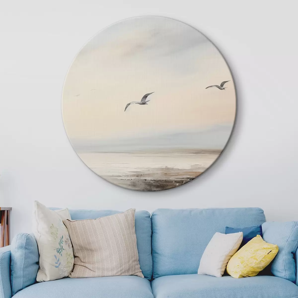 Кругла картина Пастельний пейзаж з чайками, що летять Nr r44763