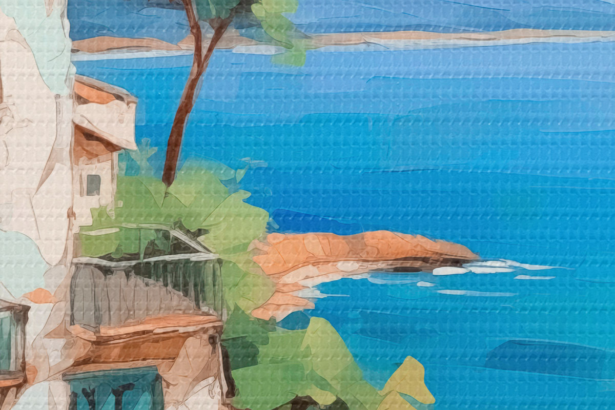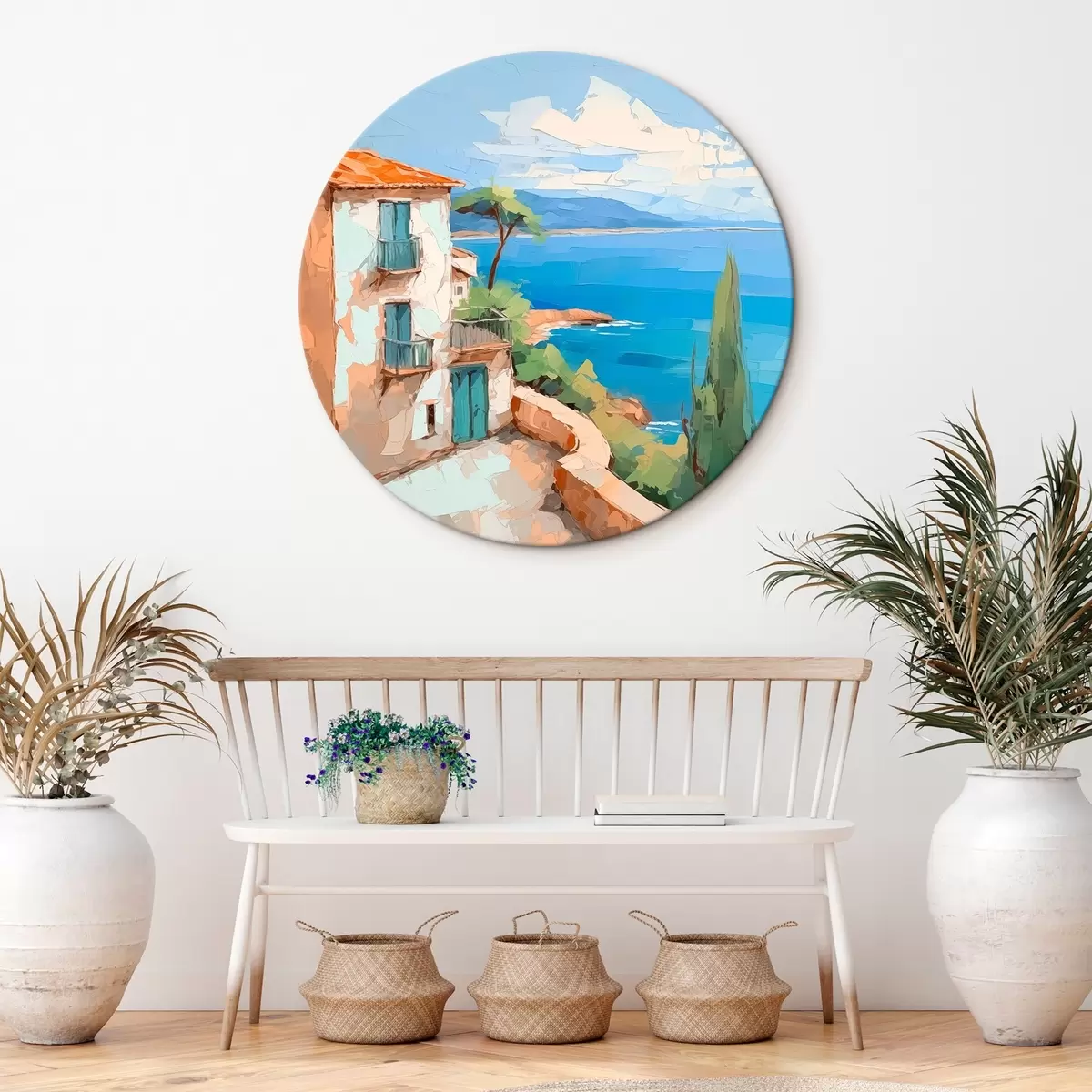 Кругла картина Будинок на березі моря імітація живопису Nr r44767
