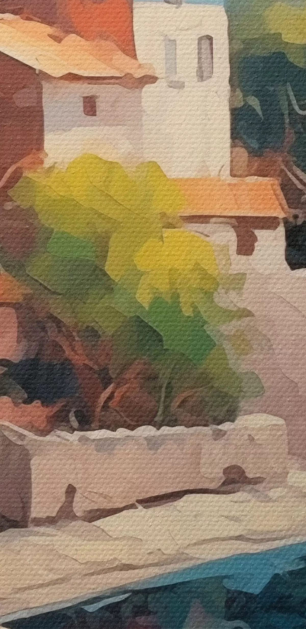 Кругла картина Будинки на березі затоки Імітація живопису Nr r44773