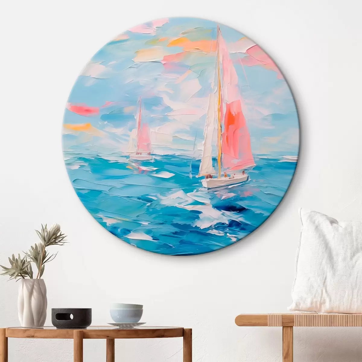 Кругла картина Імітація вітрильників у морі r44780