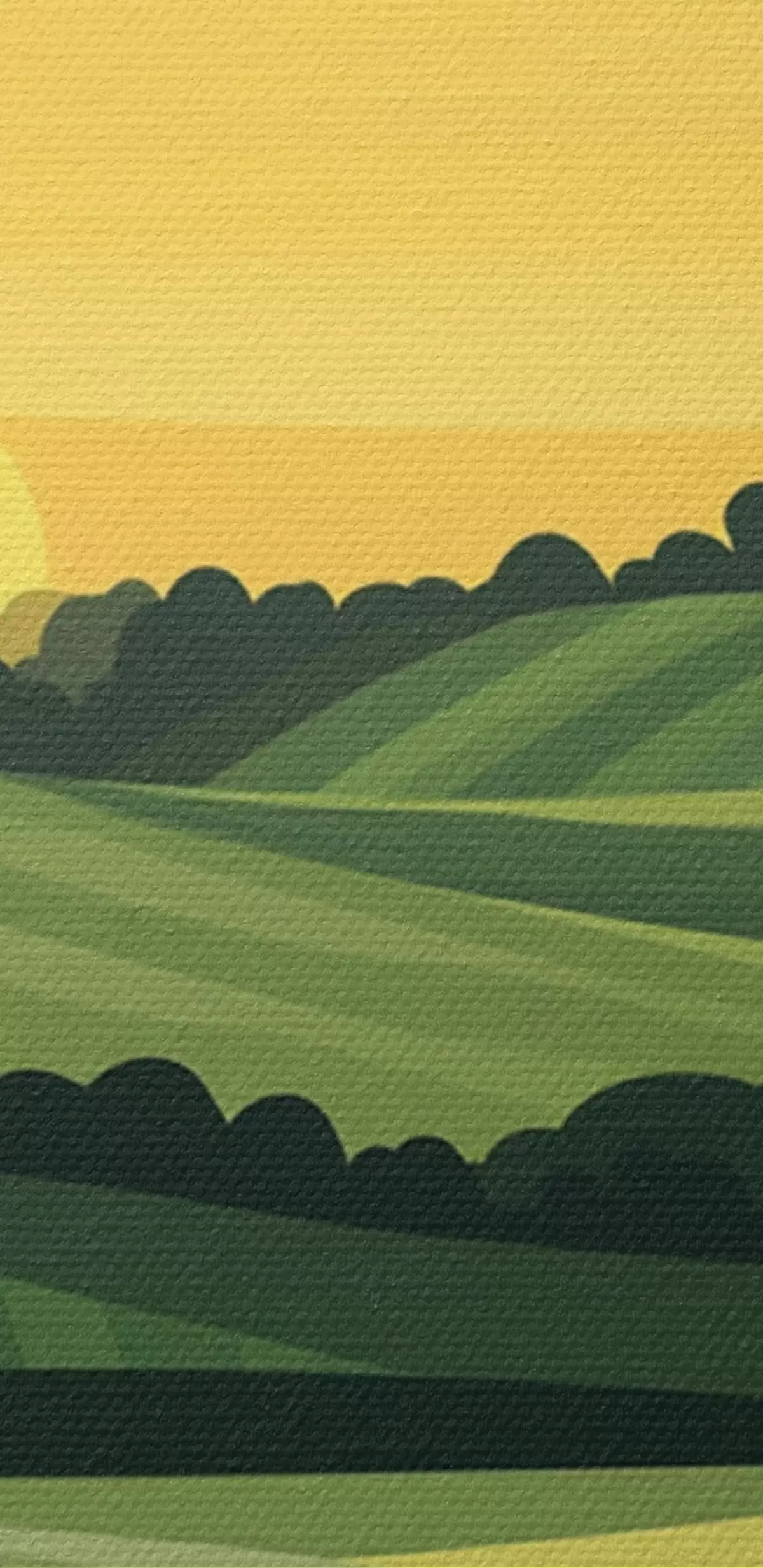 Кругла картина Абстрактні пейзажі з пагорбами та заходом сонця Nr r44785