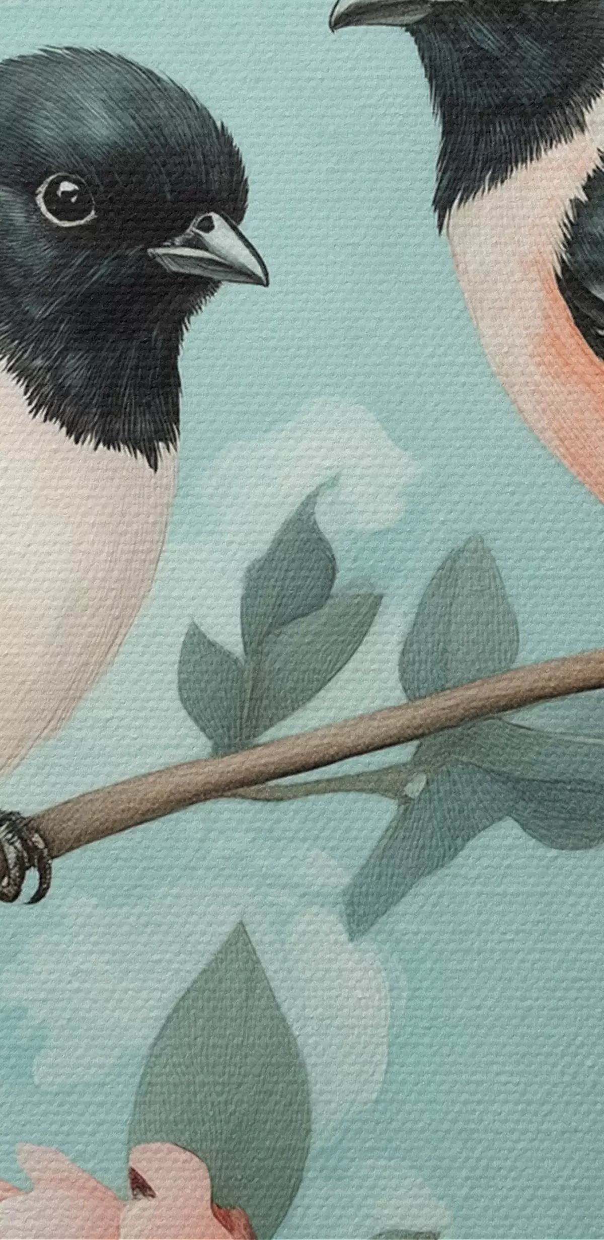 Кругла картина Дві пташки на гілці з півоніями Nr r44786