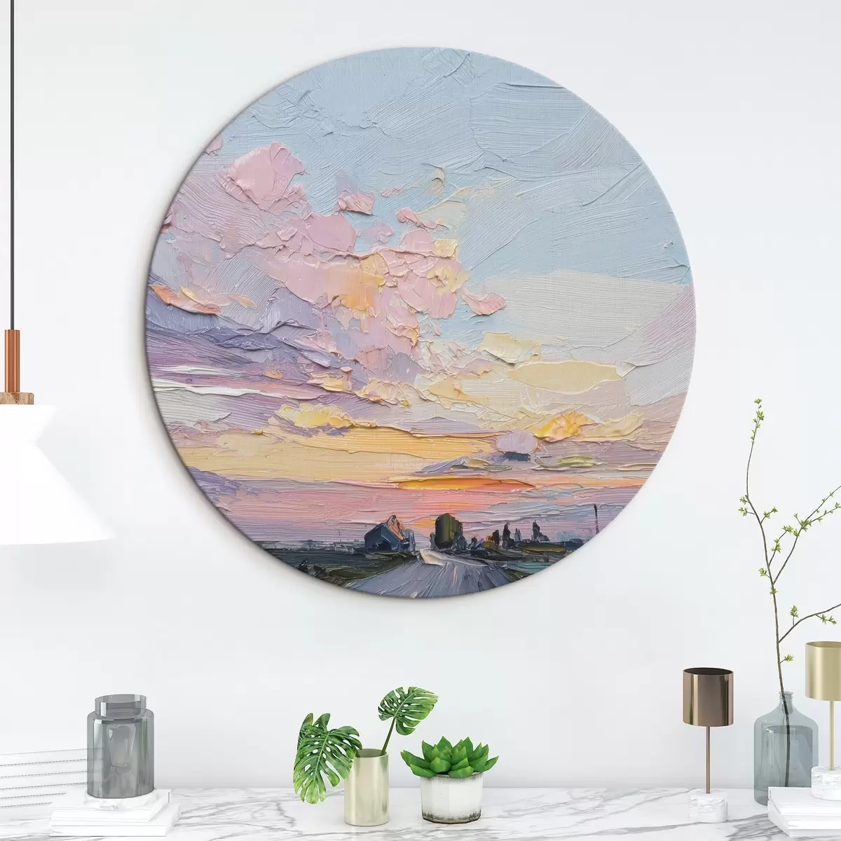 Кругла картина Сільські пейзажі в олійному стилі, захід сонця Nr r44794