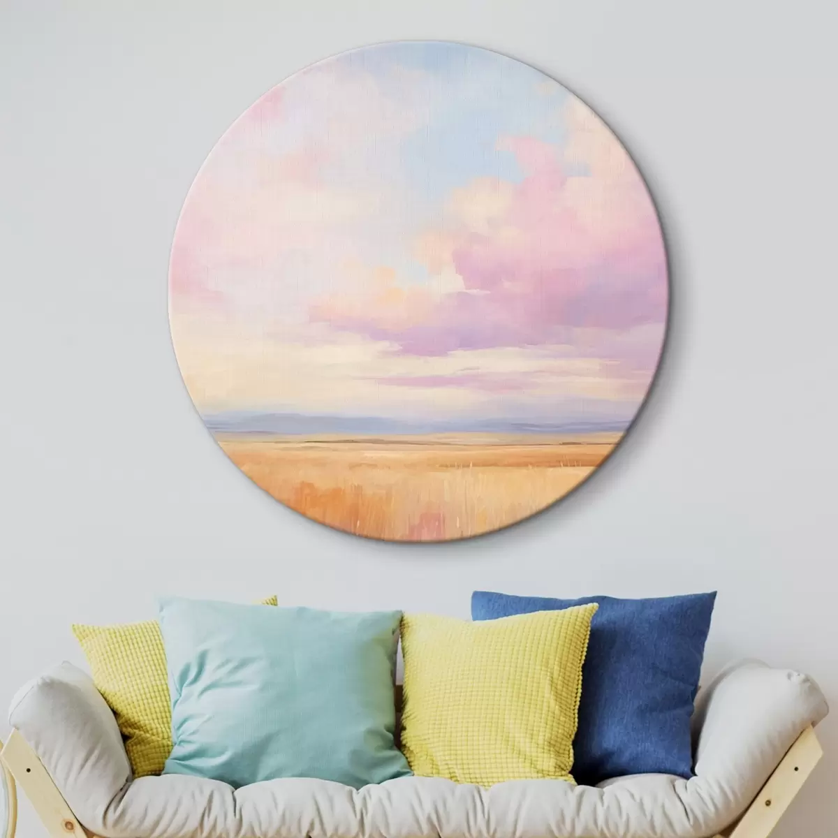Кругла картина Рожеве небо над полем r44810