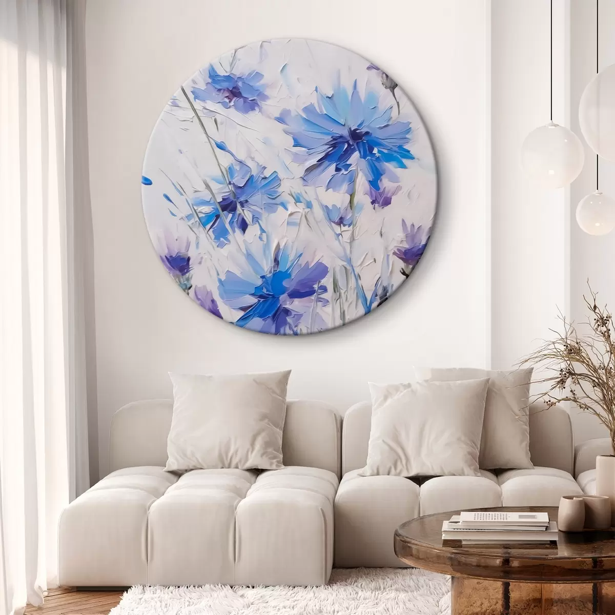 Кругла картина Імітація розпису волошок r44831