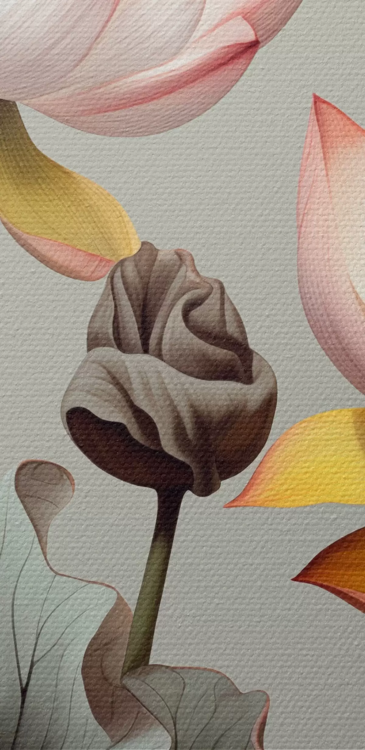 Кругла картина Квіти лотоса з пастельними пелюстками та зеленим листям, у приглушеній кольоровій палітрі, на однотонному тлі r44862