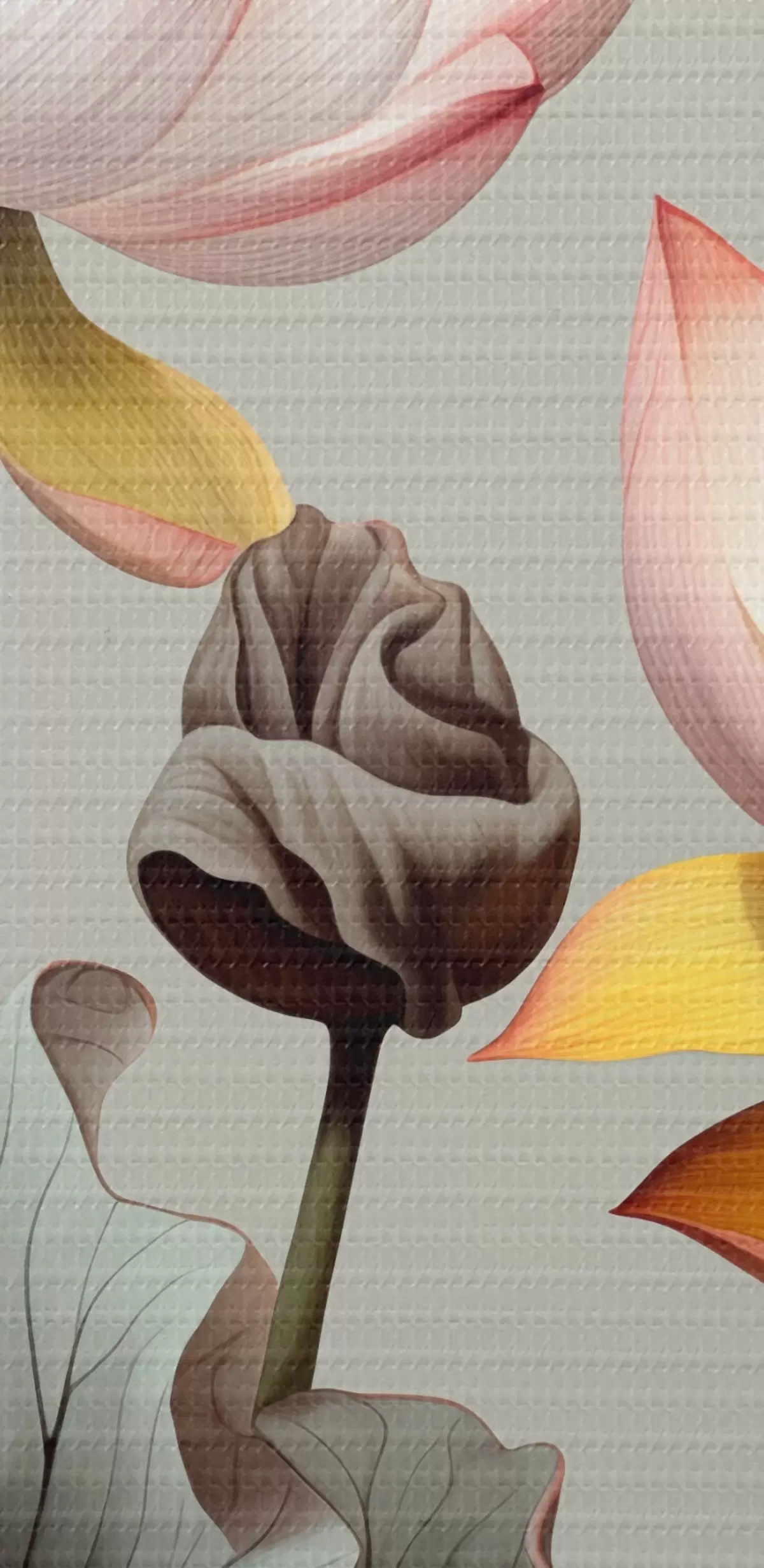 Кругла картина Квіти лотоса з пастельними пелюстками та зеленим листям, у приглушеній кольоровій палітрі, на однотонному тлі Nr r44862