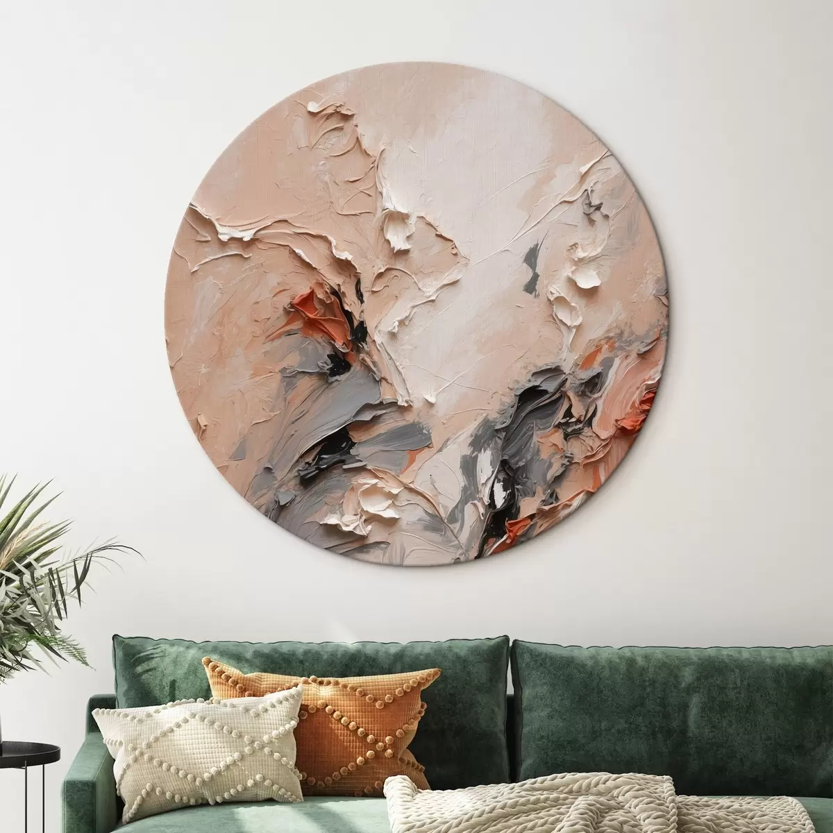 Кругла картина Абстракція в персиково-сірих тонах з фактурними мазками Nr r44873
