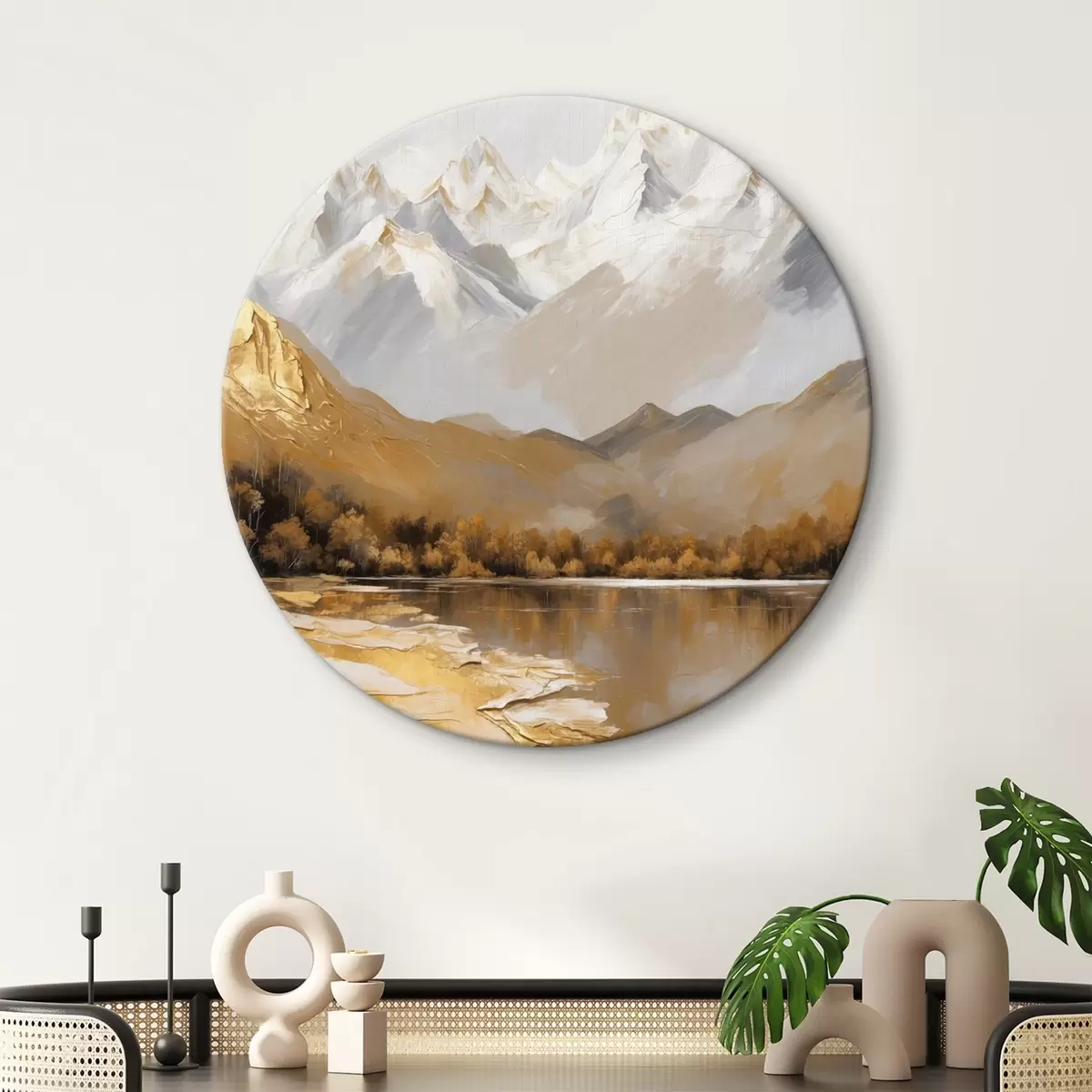Кругла картина Гірський пейзаж з озером у теплих тонах Nr r44877