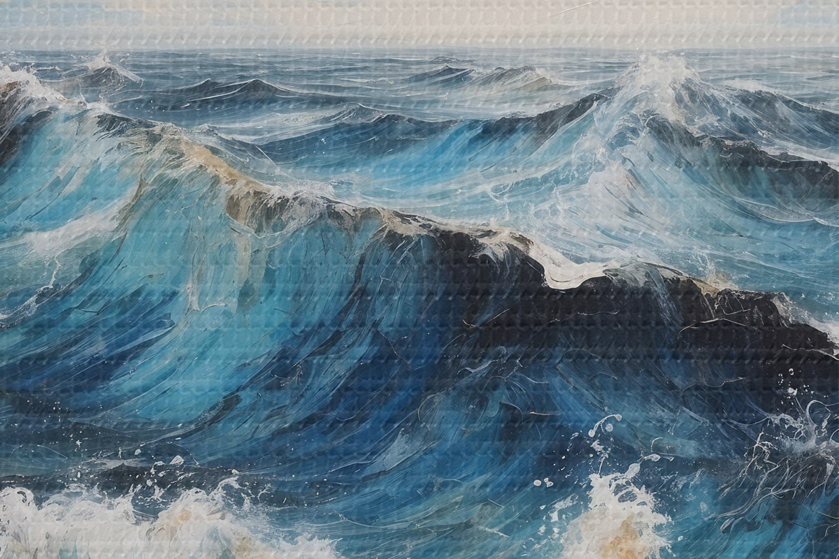 Кругла картина Бурхливе море з хвилями під чистим небом Nr r44881